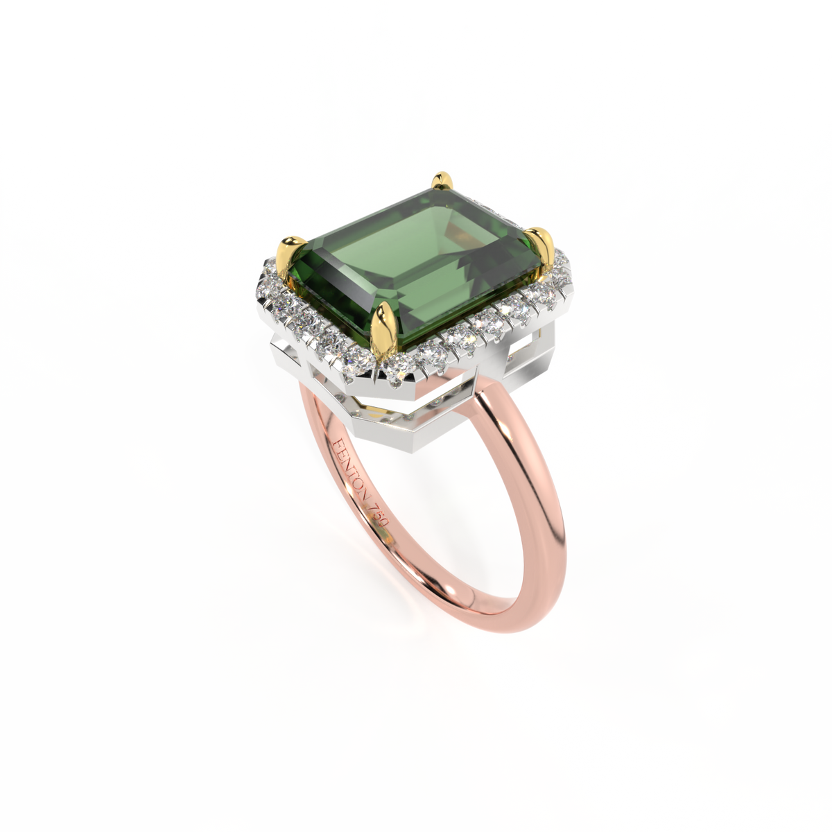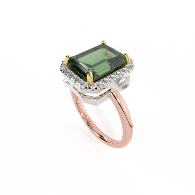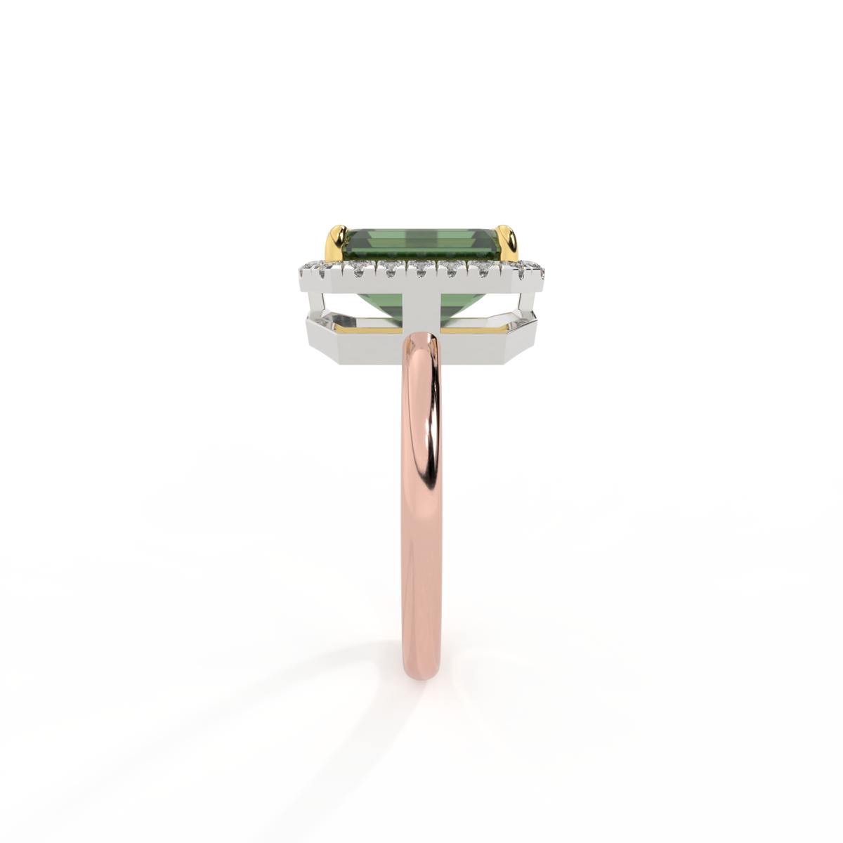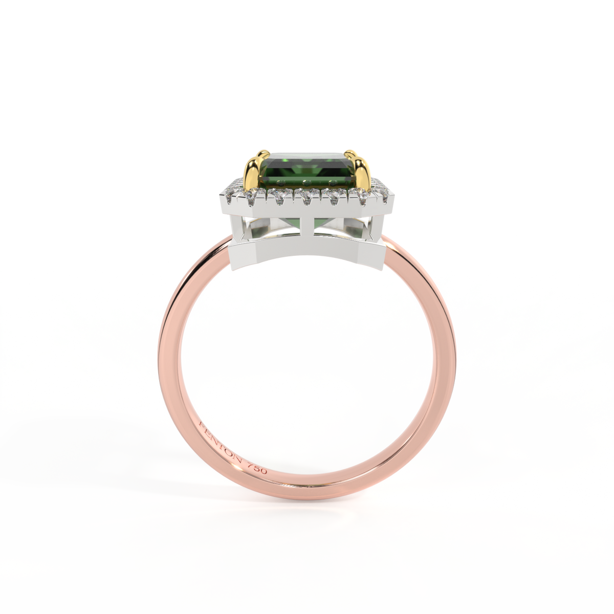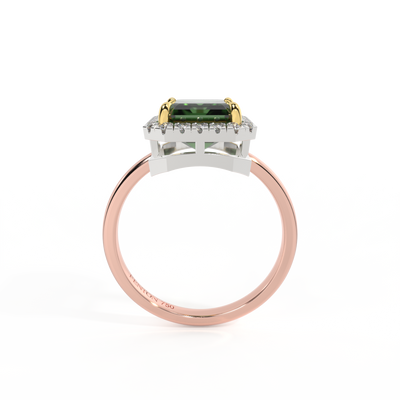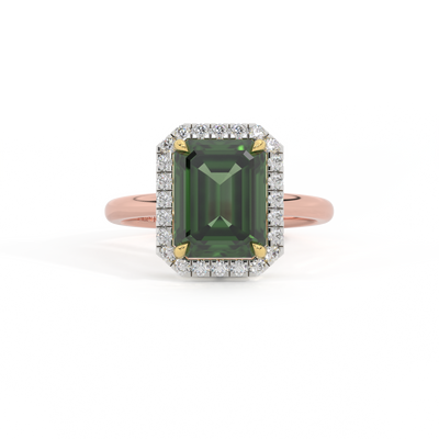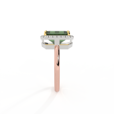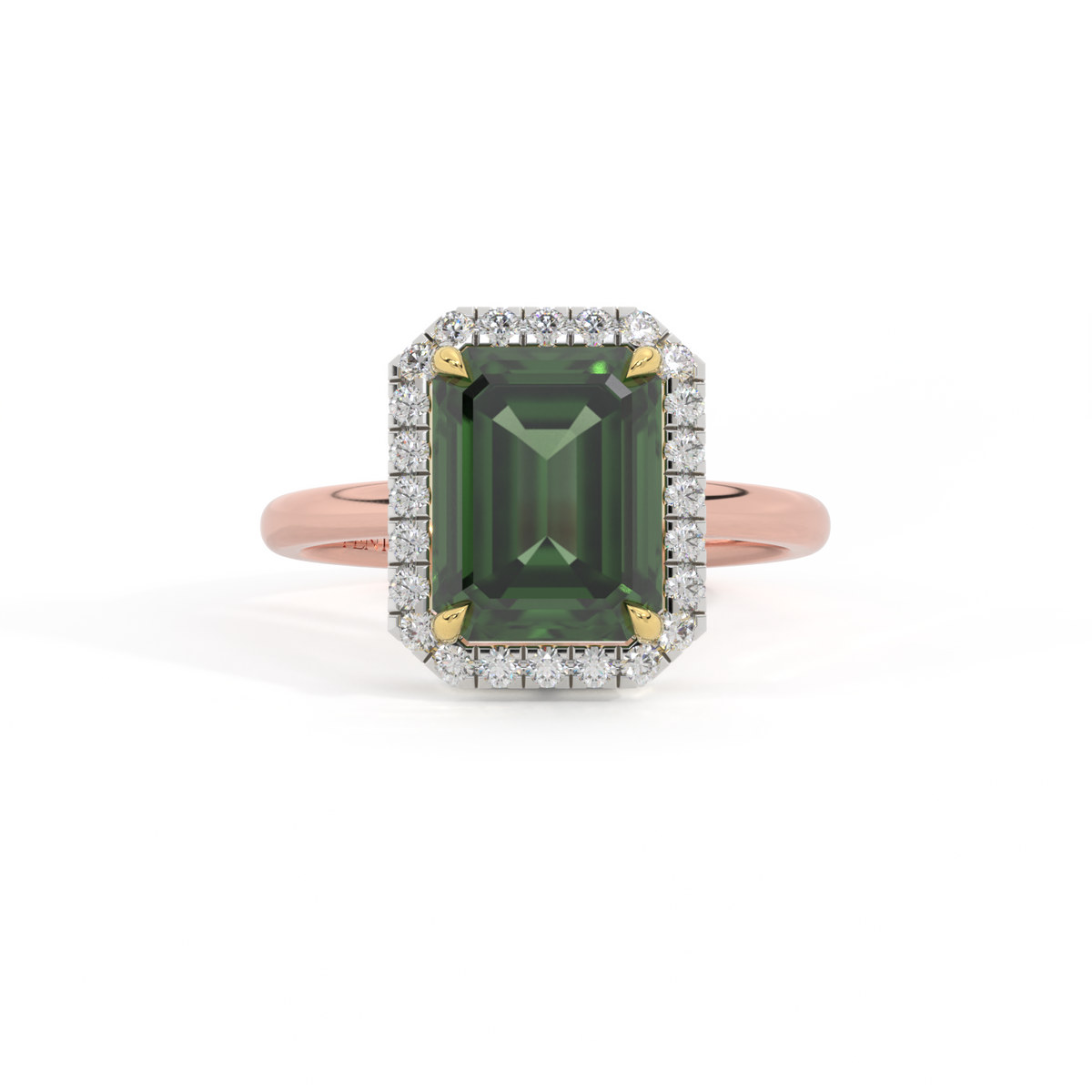 Halo Emerald Green Sapphire 18K Rose Gold Ring