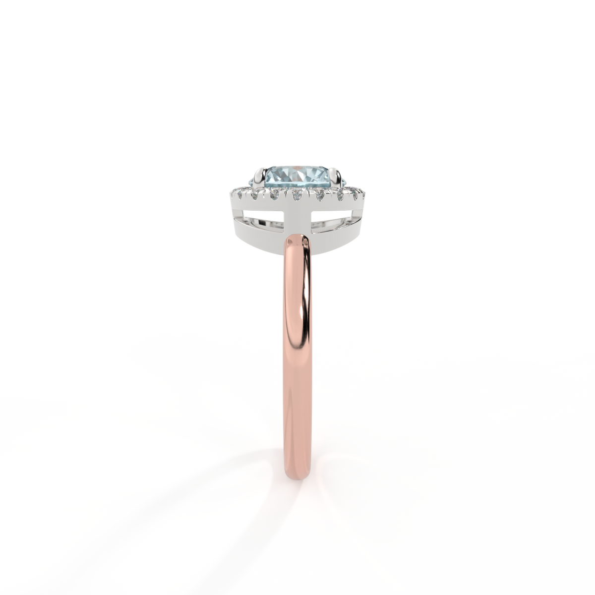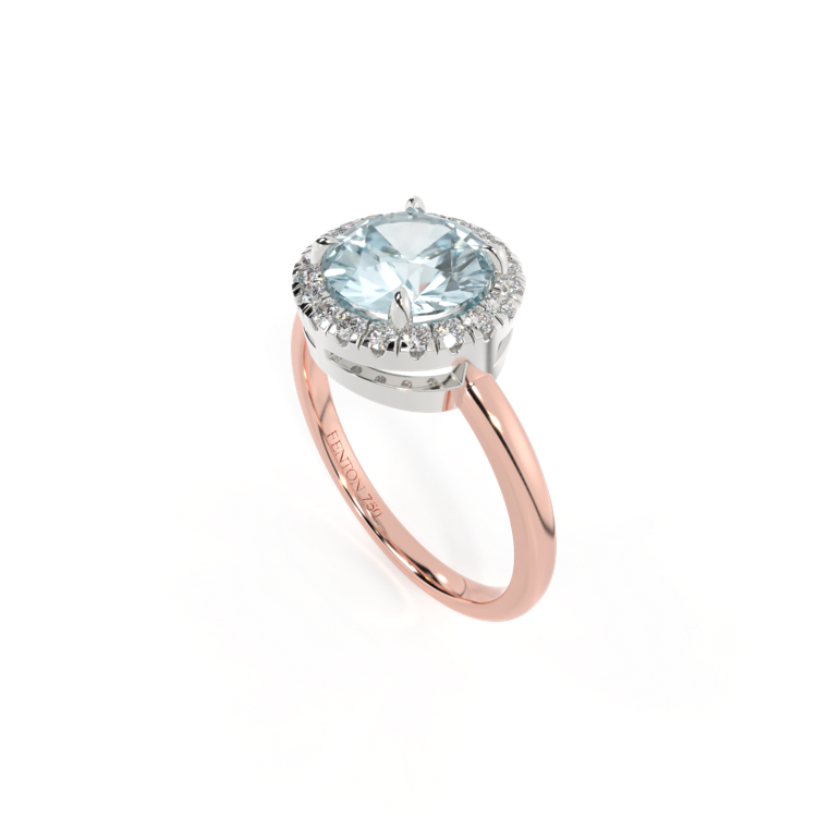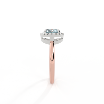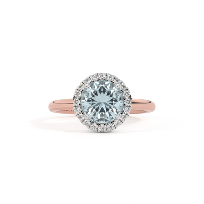 Halo Round Aquamarine 18K Rose Gold Ring