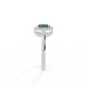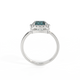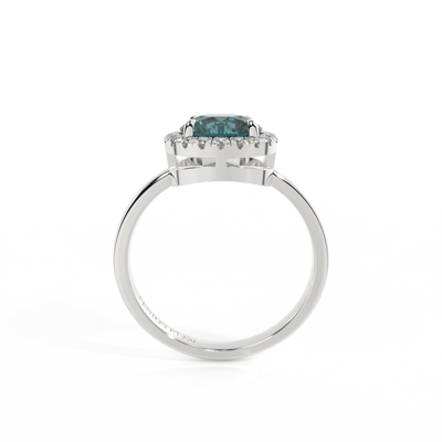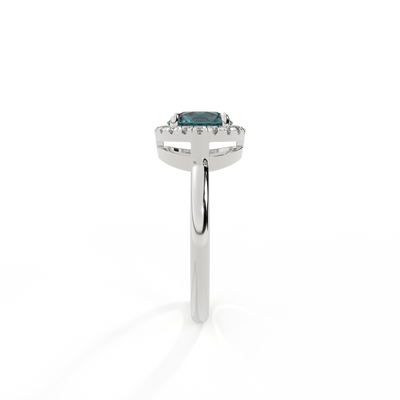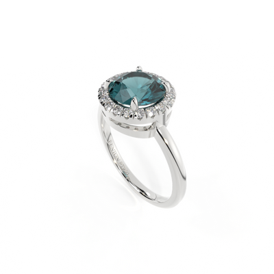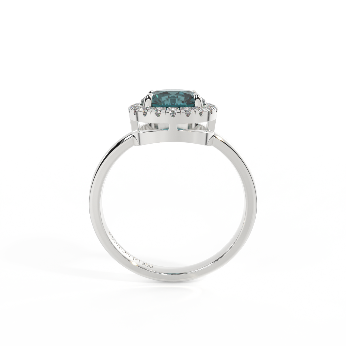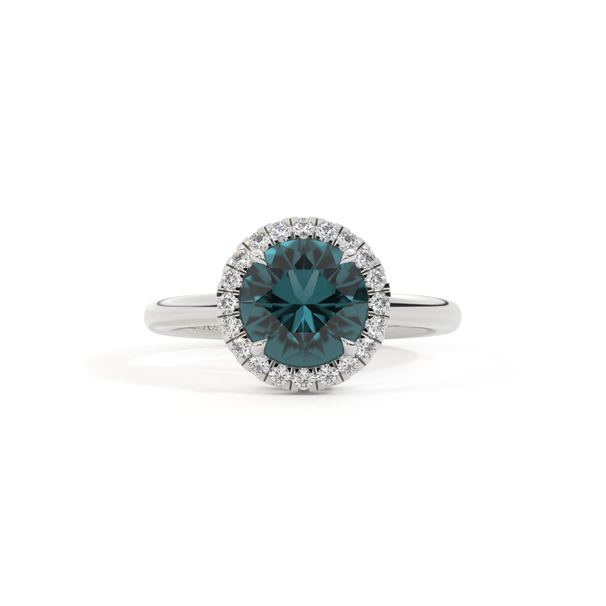 All of our rings are available in blue sapphire, teal sapphire, emerald, pink sapphire, yellow sapphire and aquamarine. We offer three metals, 18K rose gold, 18K yellow gold and platinum. The center stones are available in four cuts, round, cushion, oval and emerald cut and five sizes for each cut and style.