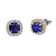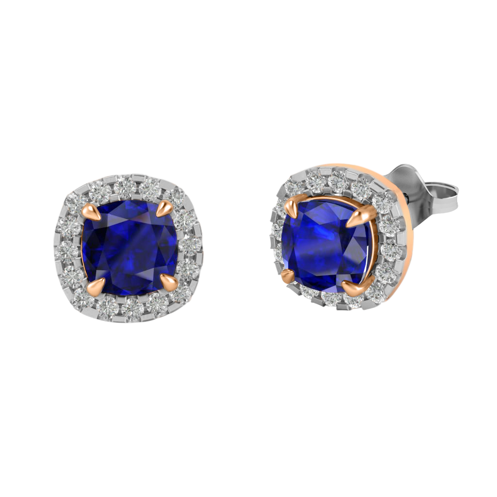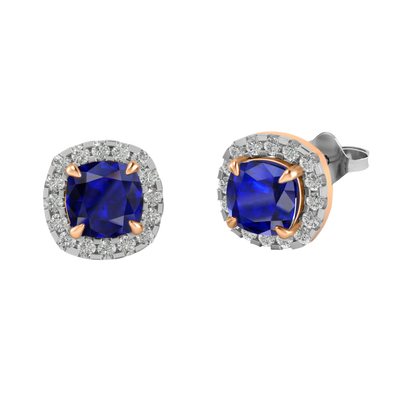 Halo Stud Cushion Blue Sapphire 18K Rose Gold Earrings