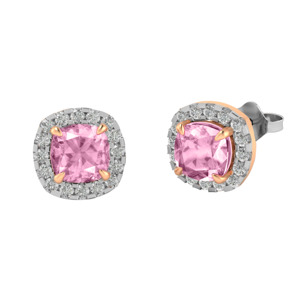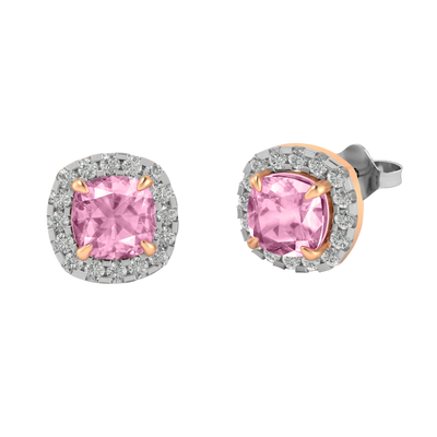 Halo Stud Cushion Pink Sapphire 18K Rose Gold Earrings