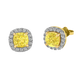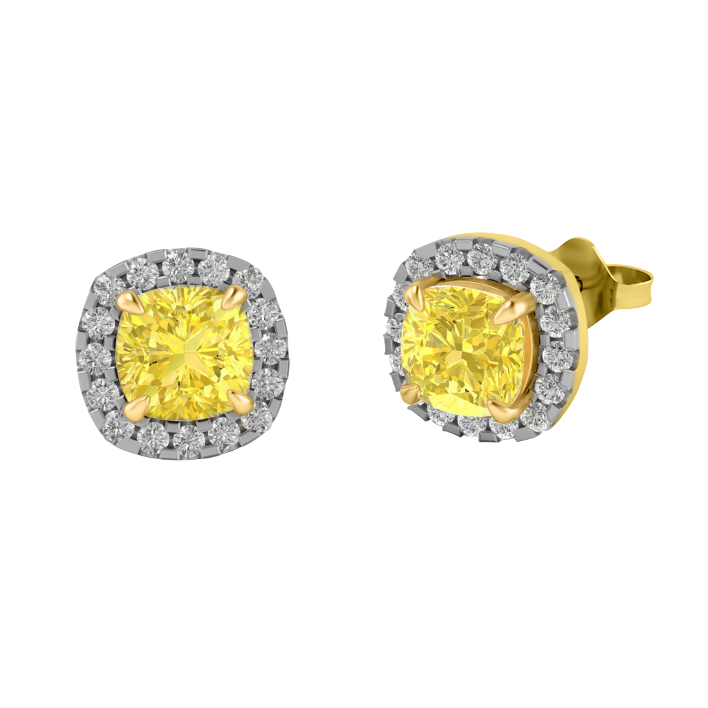 Halo Stud Cushion Yellow Sapphire 18K Yellow Gold Earrings