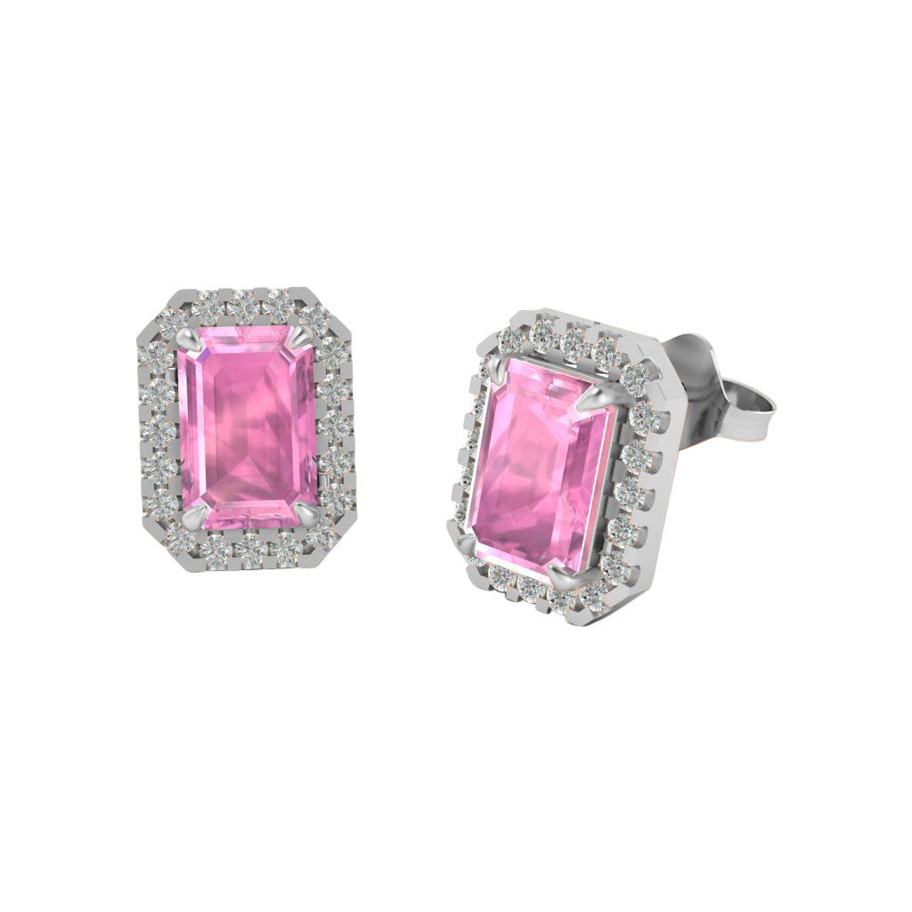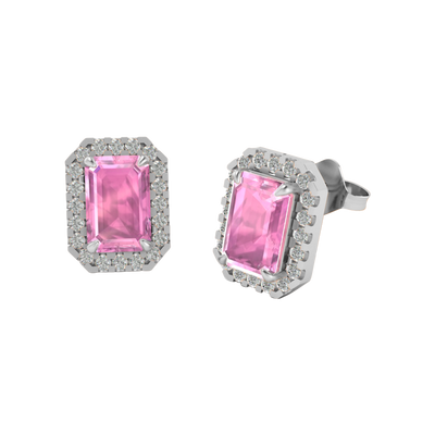 Halo Stud Emerald Pink Sapphire 18K White Gold Earrings