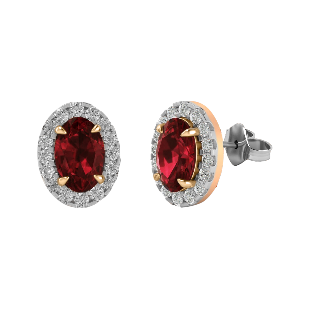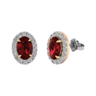 Halo Stud Oval Ruby 18K Rose Gold Earrings