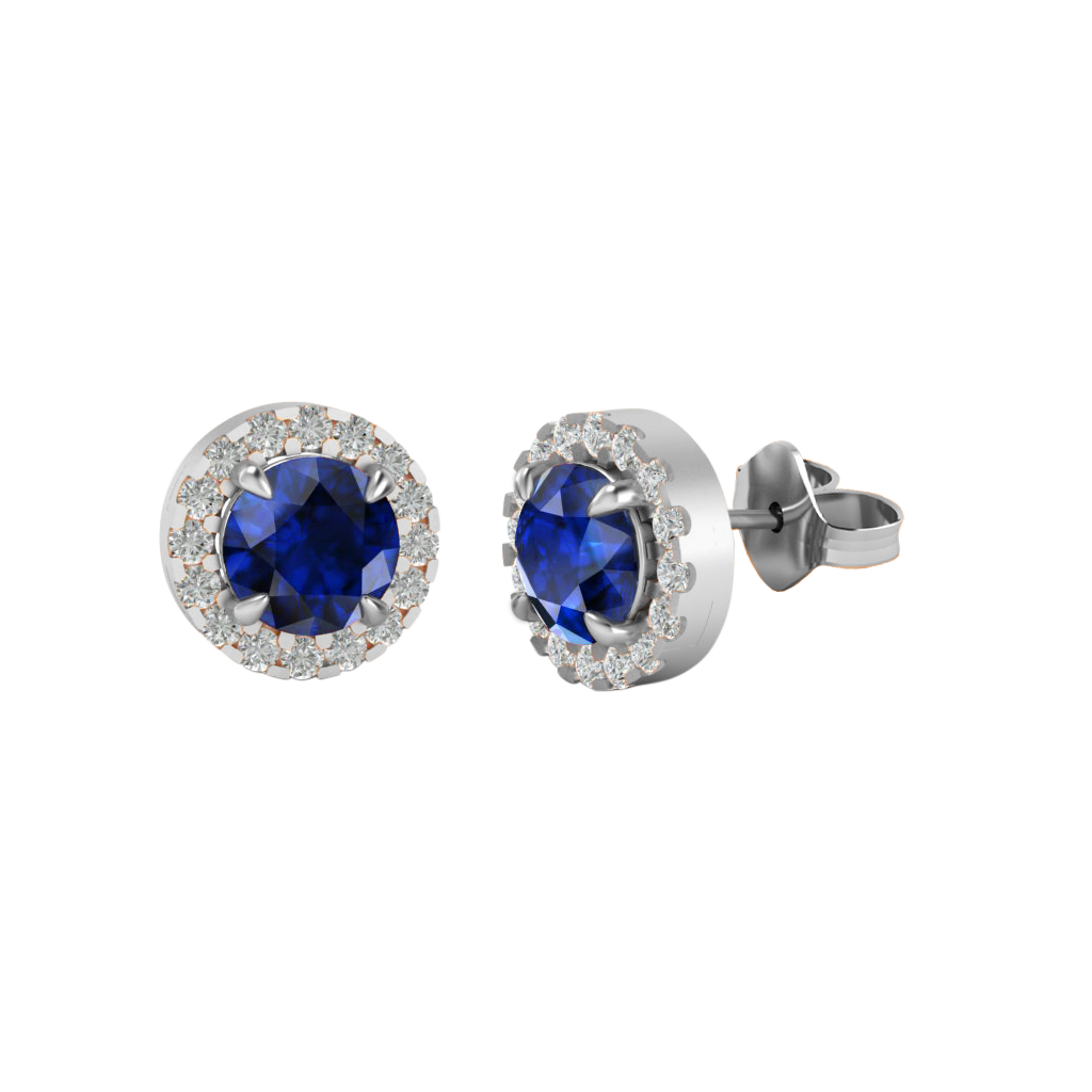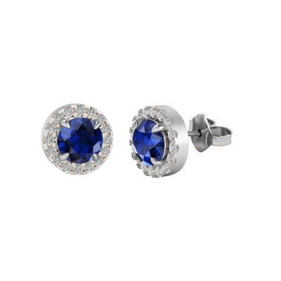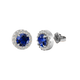 Halo Stud Round Blue Sapphire 18K White Gold Earrings