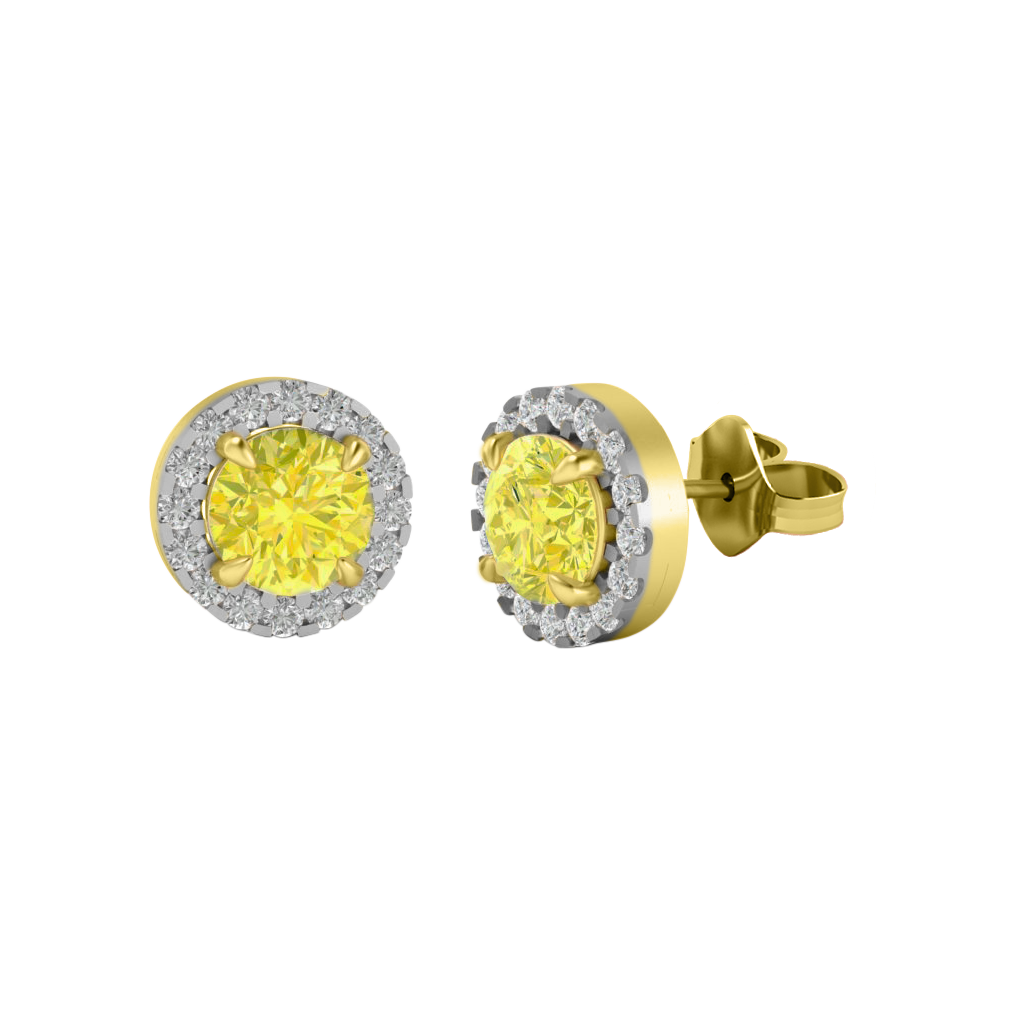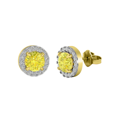 Halo Stud Round Yellow Sapphire 18K Yellow Gold Earrings