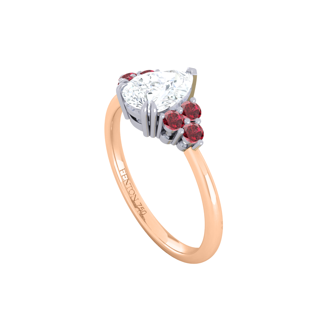 Lab Grown Diamond Trefoil Pear Cut Diamond and Ruby 18k Rose Gold Ring