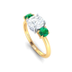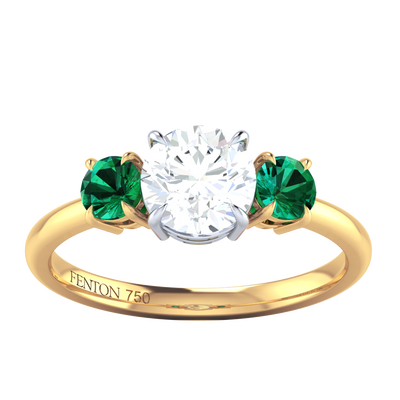 Proof that three isn't always a crowd, our Lab Grown Diamond Trilogy Ring unites a sparkling Lab Grown Diamond centre stone with two surrounding Emerald each set in a secure four single- or double claw setting and complimenting the exquisite sparkle of your Lab Grown Diamond stone. Your Round Lab Grown Diamond stone has a EF V/S quality rating and is set in a simple yet elegant gallery feeding smoothly into a sleek and simple 18K Yellow Gold band ranging from 1.90 - 2.20mm.