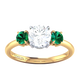 Lab Grown Diamond Trilogy Round Cut Diamond and Emerald 18k Yellow Gold Ring