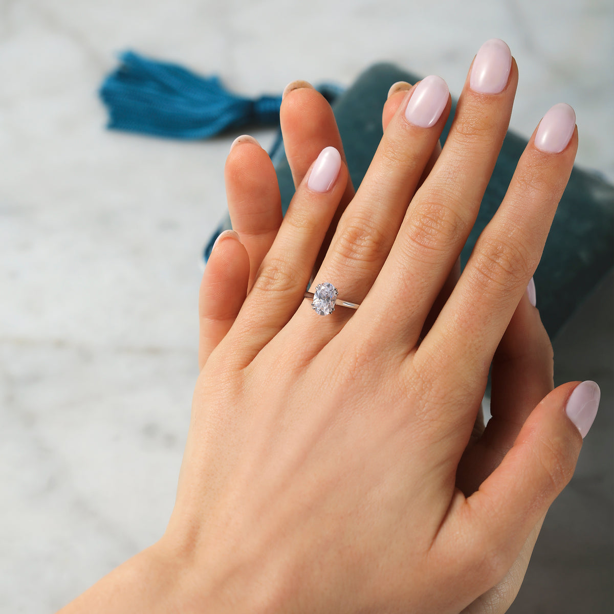 Naturally Mined Diamond Solitaire Oval Cut Platinum Ring