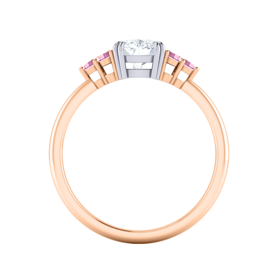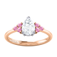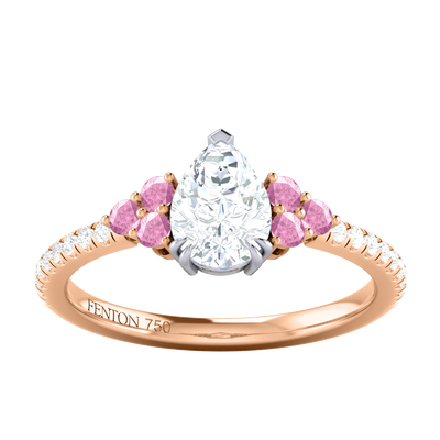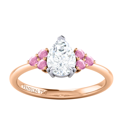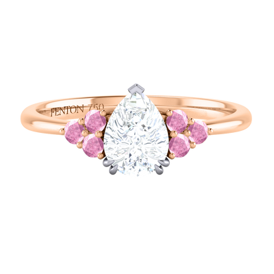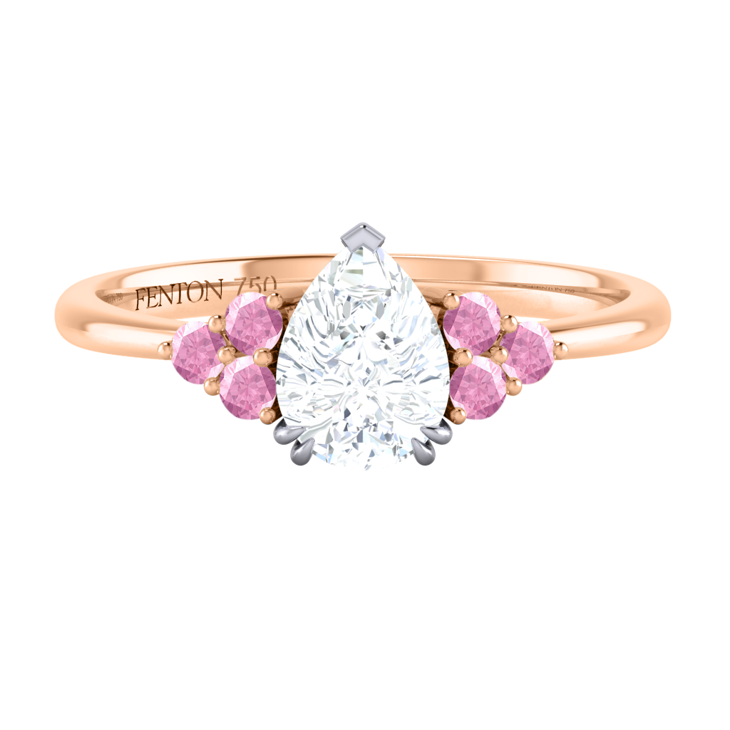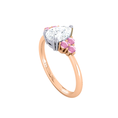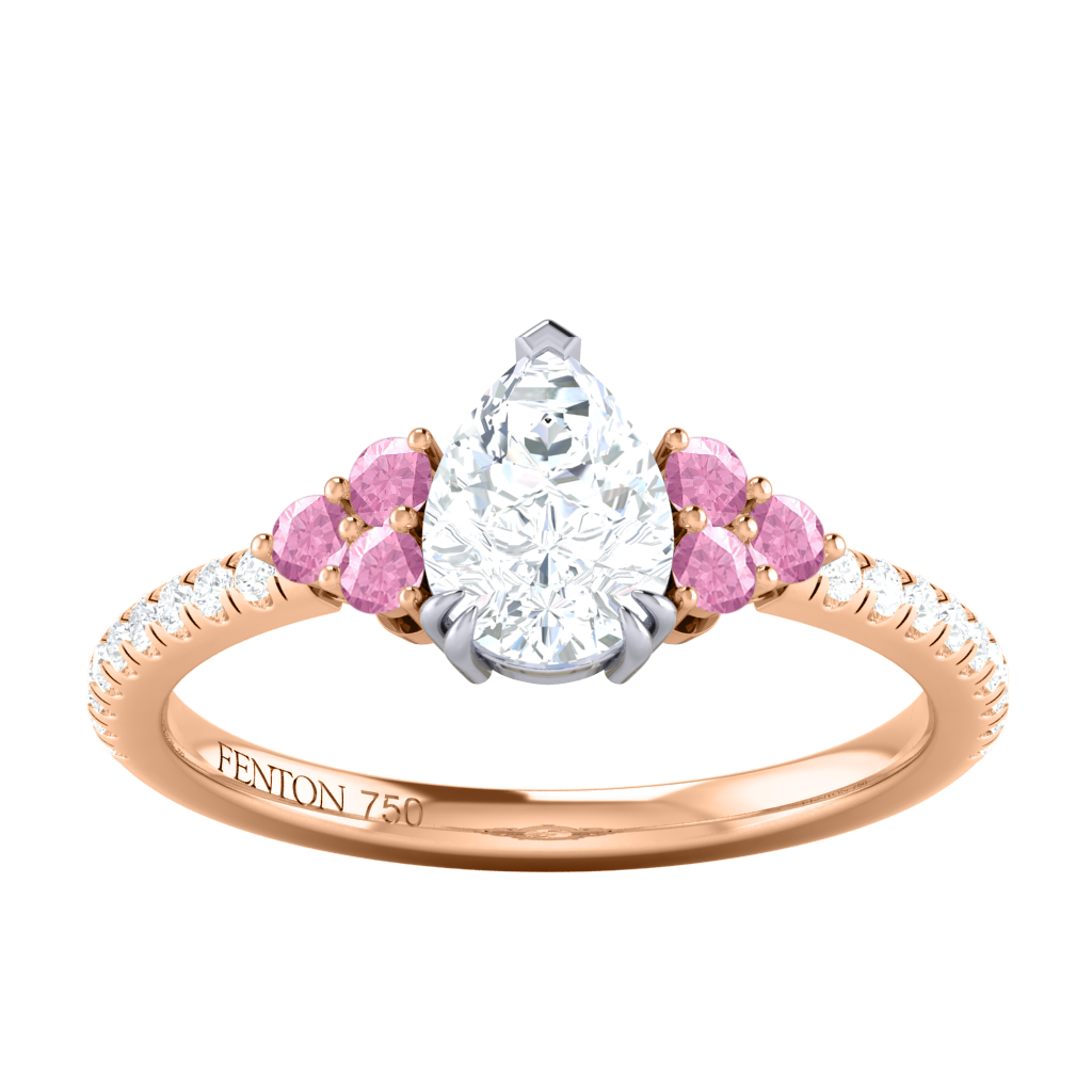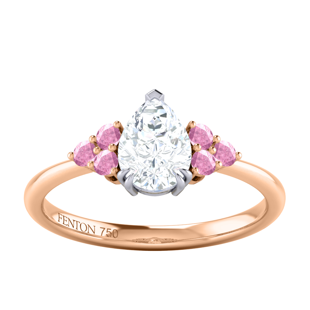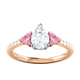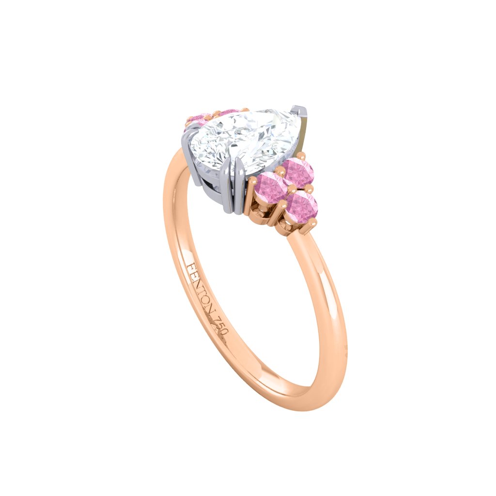 Naturally Mined Diamond Trefoil Pear Cut Diamond and Pink Sapphire 18k Rose Gold Ring