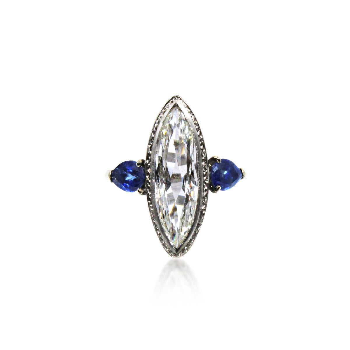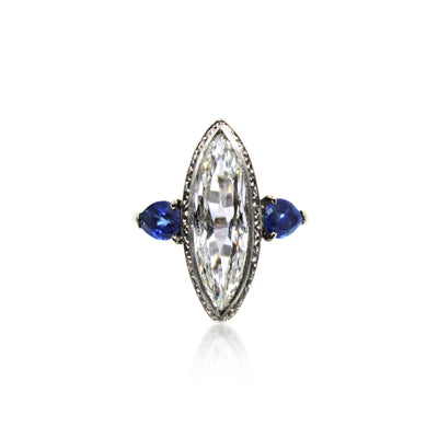 Vintage Marquise Diamond and Blue Sapphire Trilogy Ring