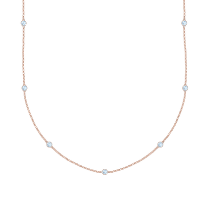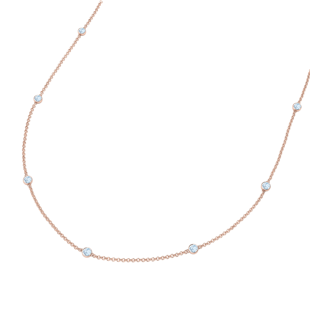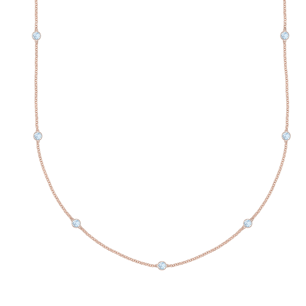 Our Seven Stone Aquamarine Necklace combines timeless elegance with glistening gemstones to make a perfect everyday Jewelry piece to adorn you from day to night. Your seven 3mm round-cut Aquamarine stones are delicately bezel-set with equal spacing to make an effortless, sparkling statement.