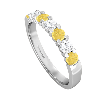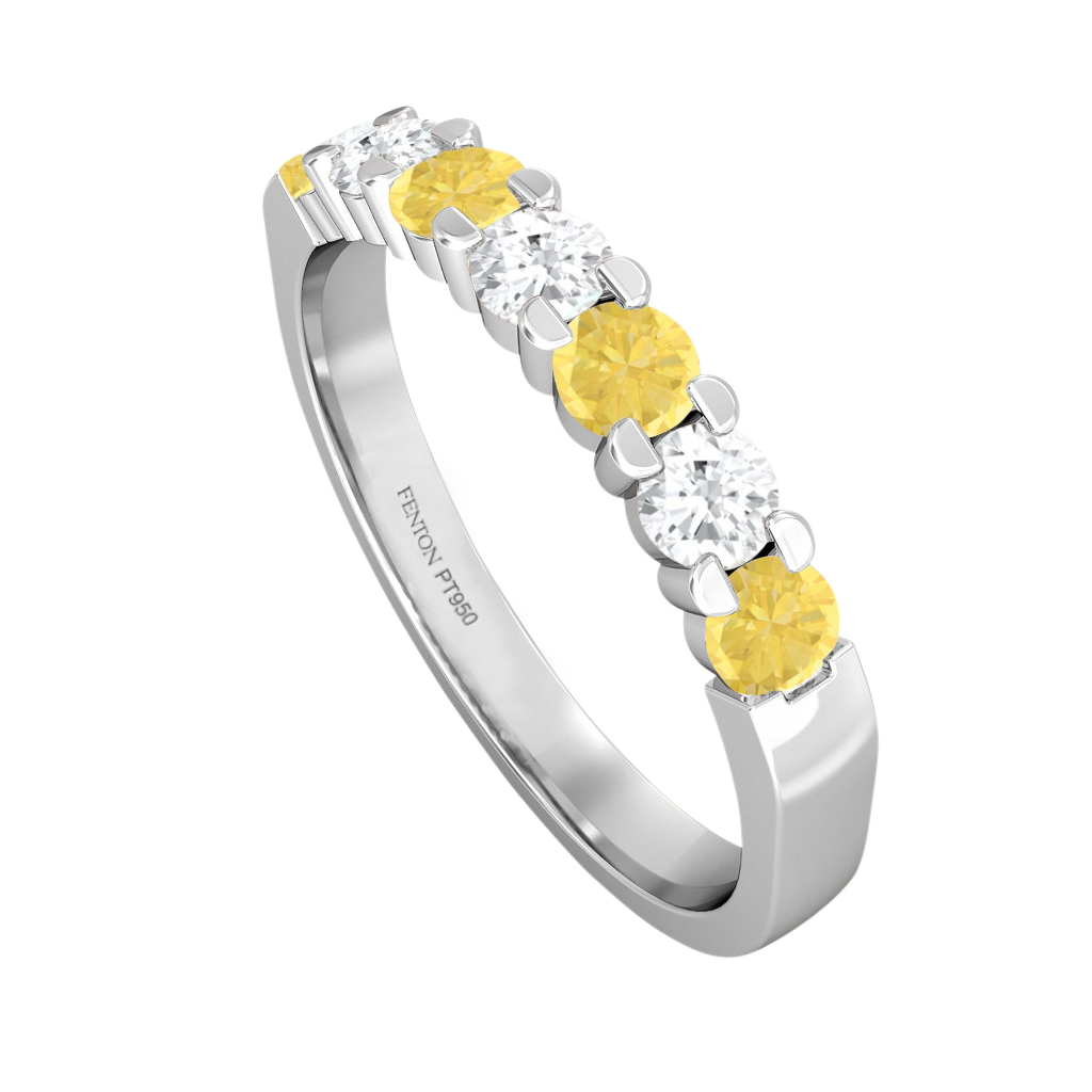 Big, bold and beautiful, this band packs a punch. Wear it alone or stack it up with your Fenton ring or other Fenton bands. The Seven Stone band has approximately 0.2cts of diamonds, 0.4cts of gemstones and is made from solid platinum.