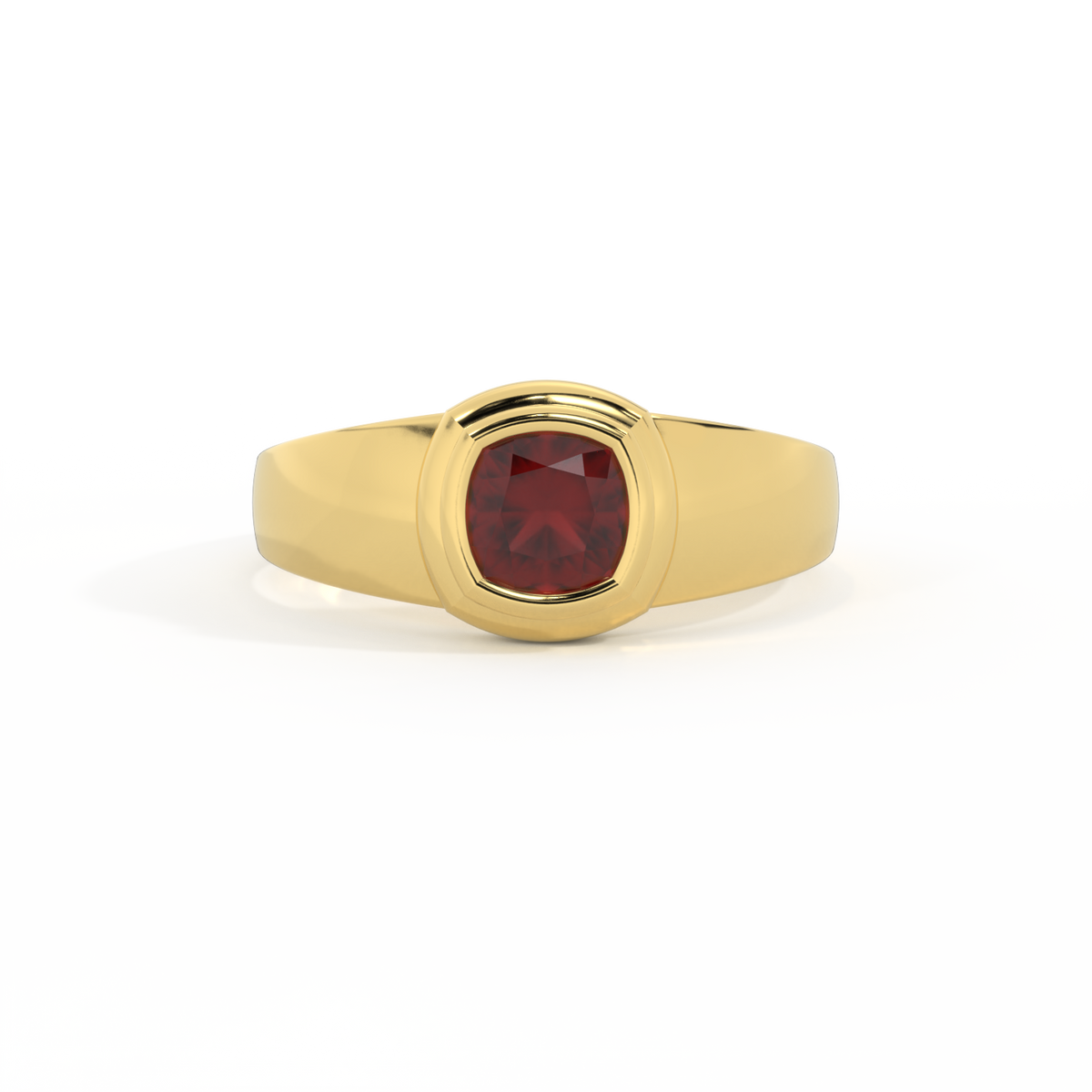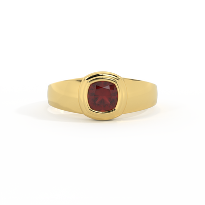 Signet Cushion Garnet 18K Yellow Gold Ring