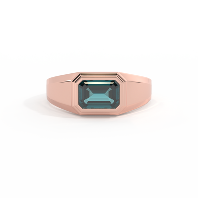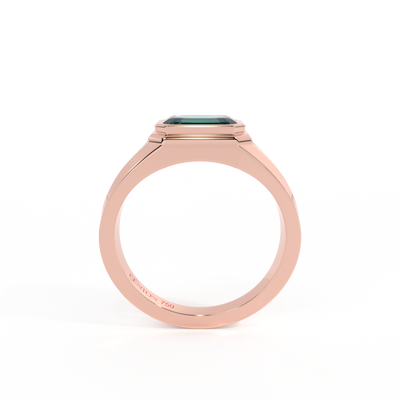 Signet Emerald Teal Sapphire 18K Rose Gold Ring