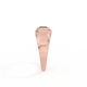 This iconic piece is set with a Emerald cut Teal Sapphire, which sits slightly proud above the 18K Rose Gold band in a stepped bezel setting. The shoulders taper outwards towards the center, with a rounded shank for maximum comfort. A modern heirloom for the everyday.