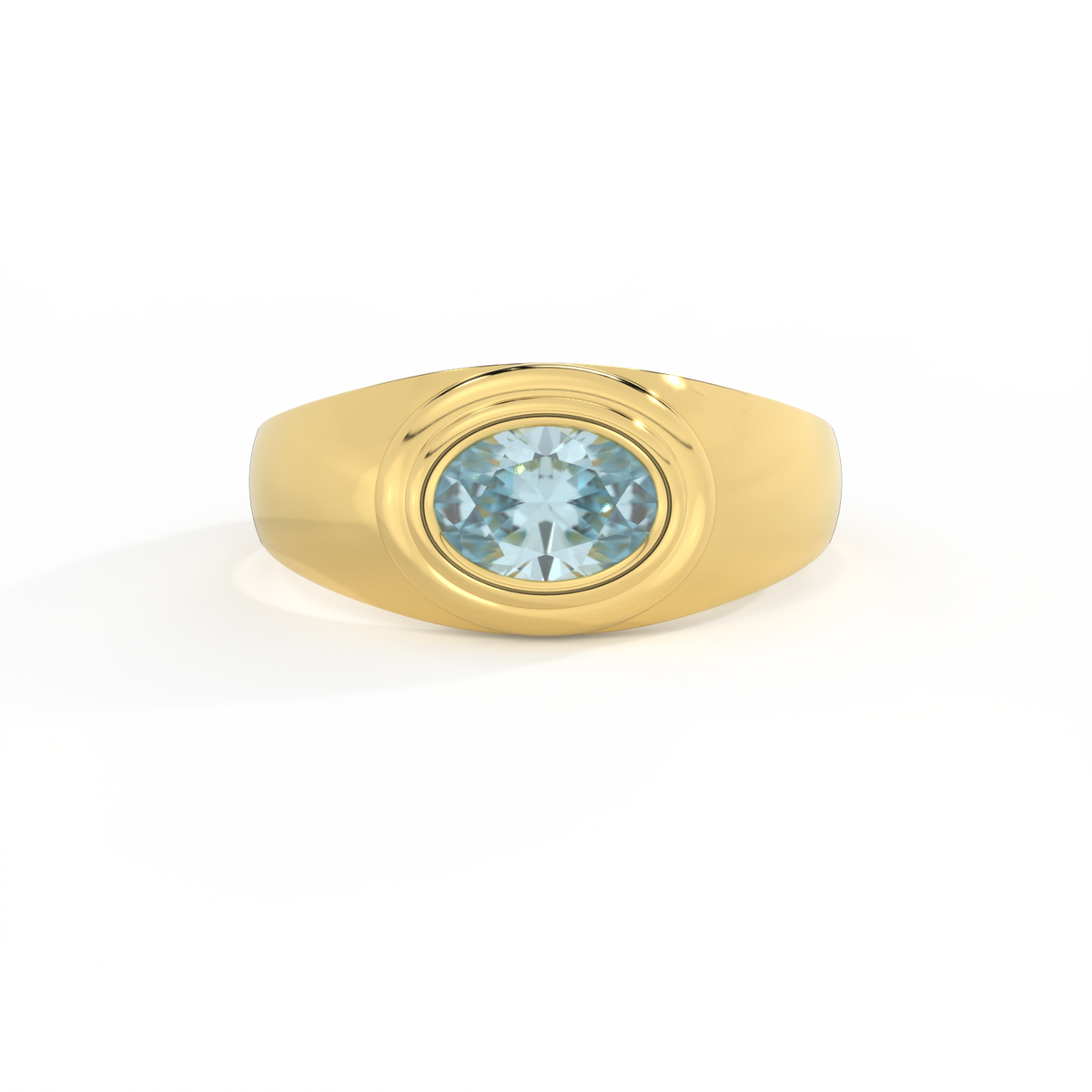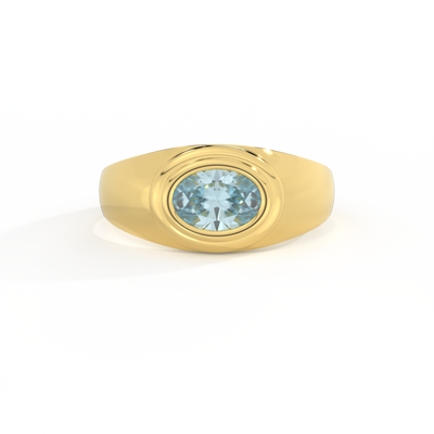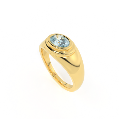 Signet Oval Aquamarine 18K Yellow Gold Ring