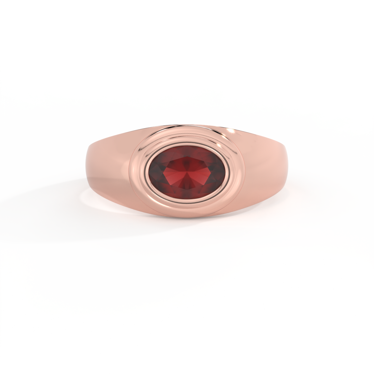 Signet Oval Garnet 18K Rose Gold Ring