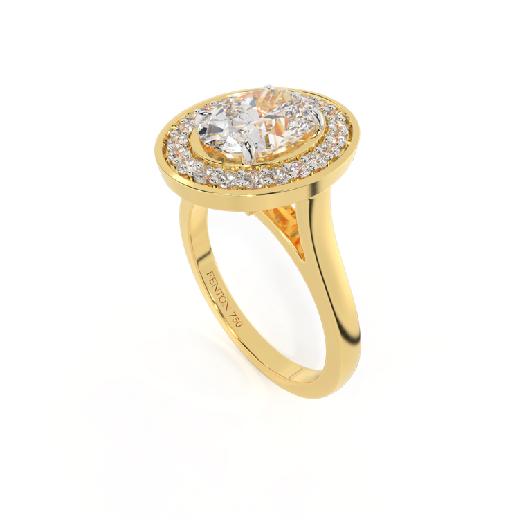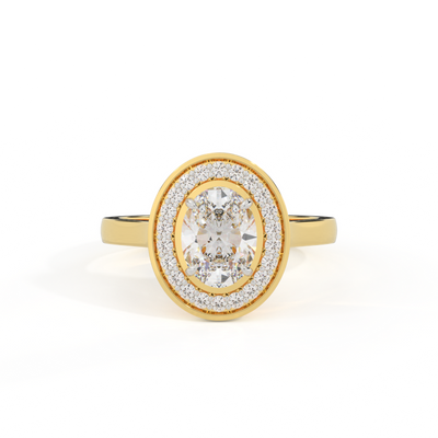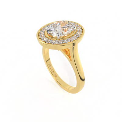 Lab Grown Solar Diamond Deco Oval Cut Diamond 18k Yellow Gold Ring