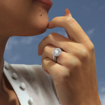 Our timeless Solar Diamond Deco ring brings the luxurious exuberance of the 1920s Art Deco movement to the 21st century with a Fenton twist. The Solar Diamond Deco style is a favourite for its signature geometric and angular silhouette and bold gemstones or diamonds.