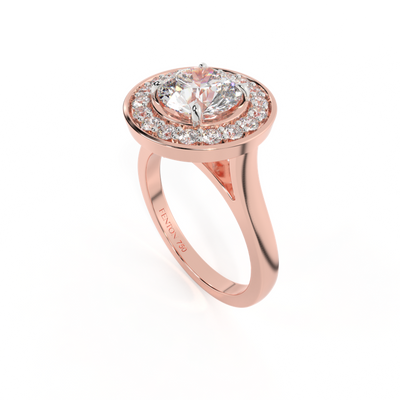 Lab Grown Solar Diamond Deco Round Cut Diamond 18k Rose Gold Ring