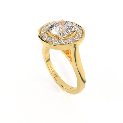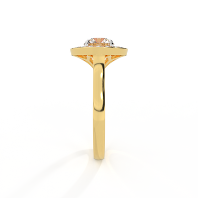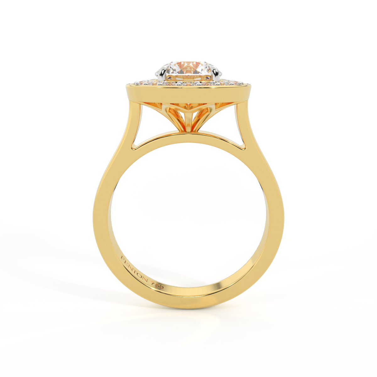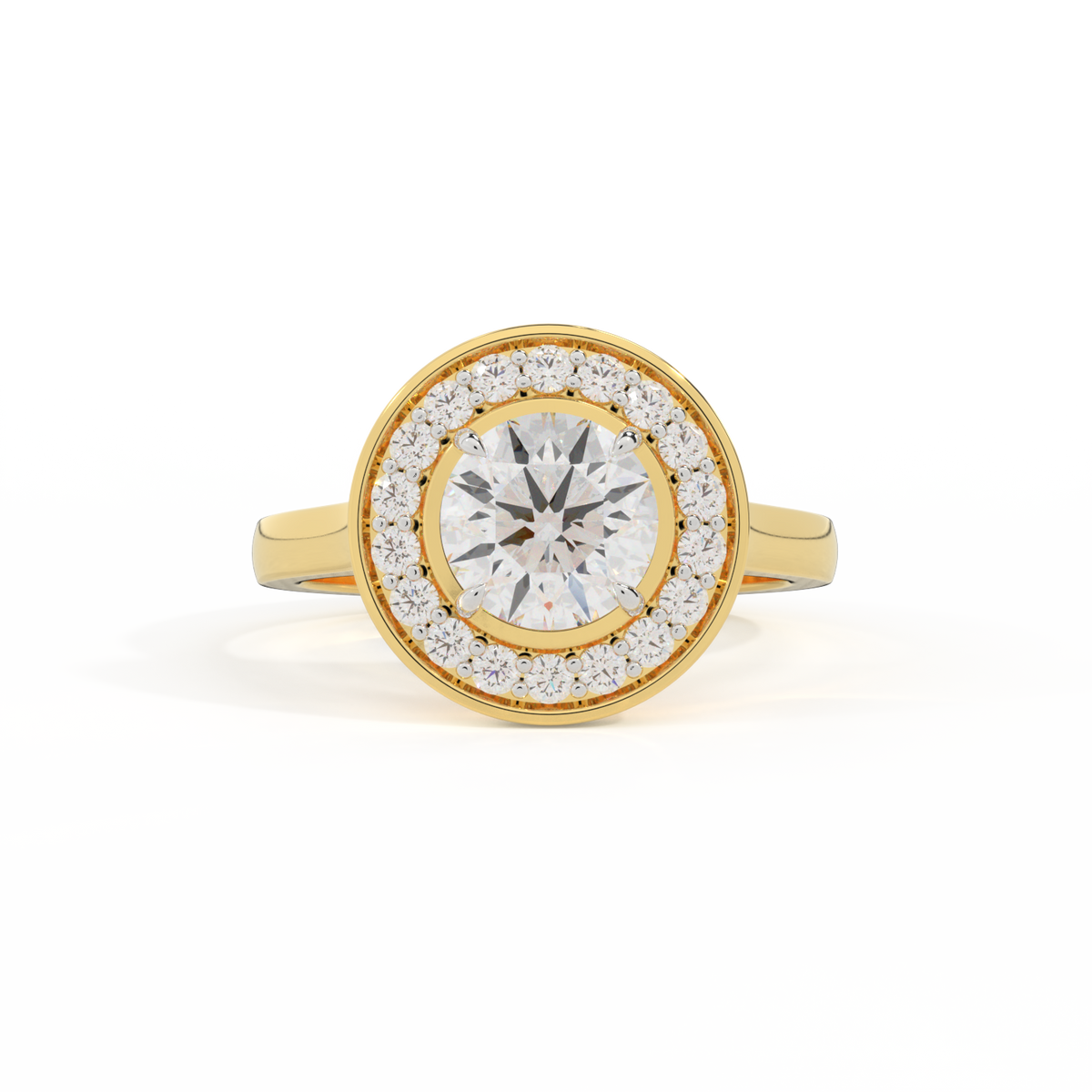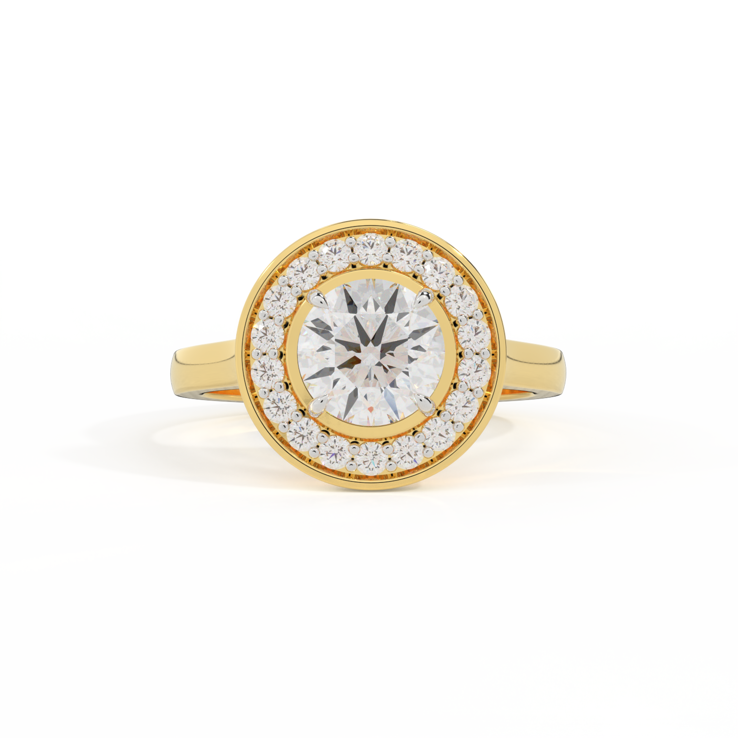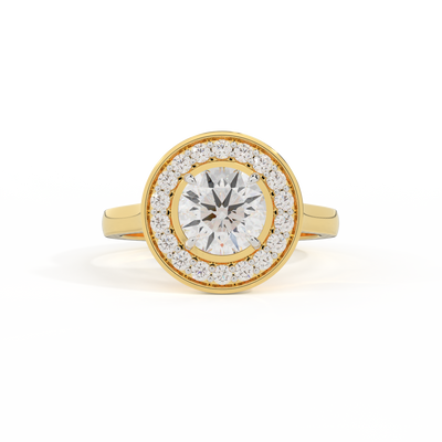 Lab Grown Solar Diamond Deco Round Cut Diamond 18k Yellow Gold Ring