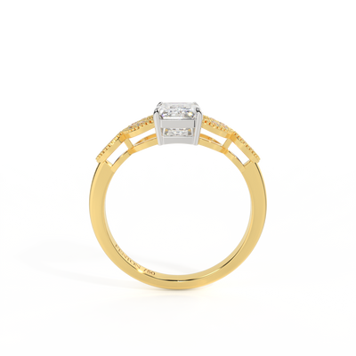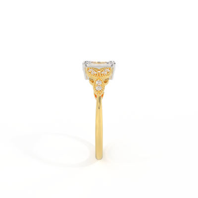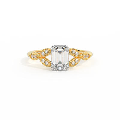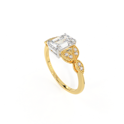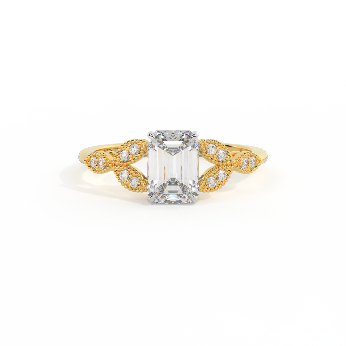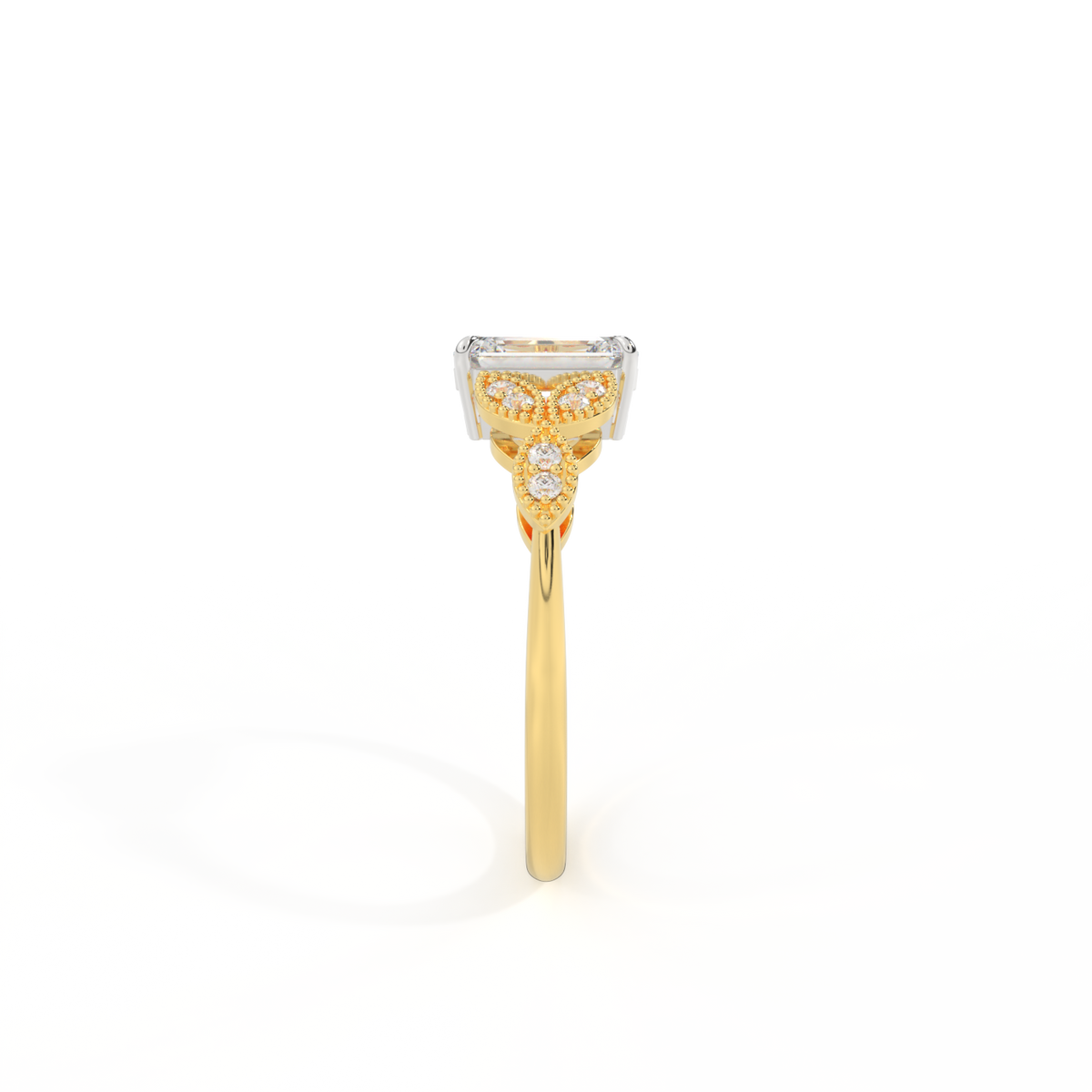 Lab Grown Solar Diamond Floral Emerald Cut Diamond 18k Yellow Gold Ring