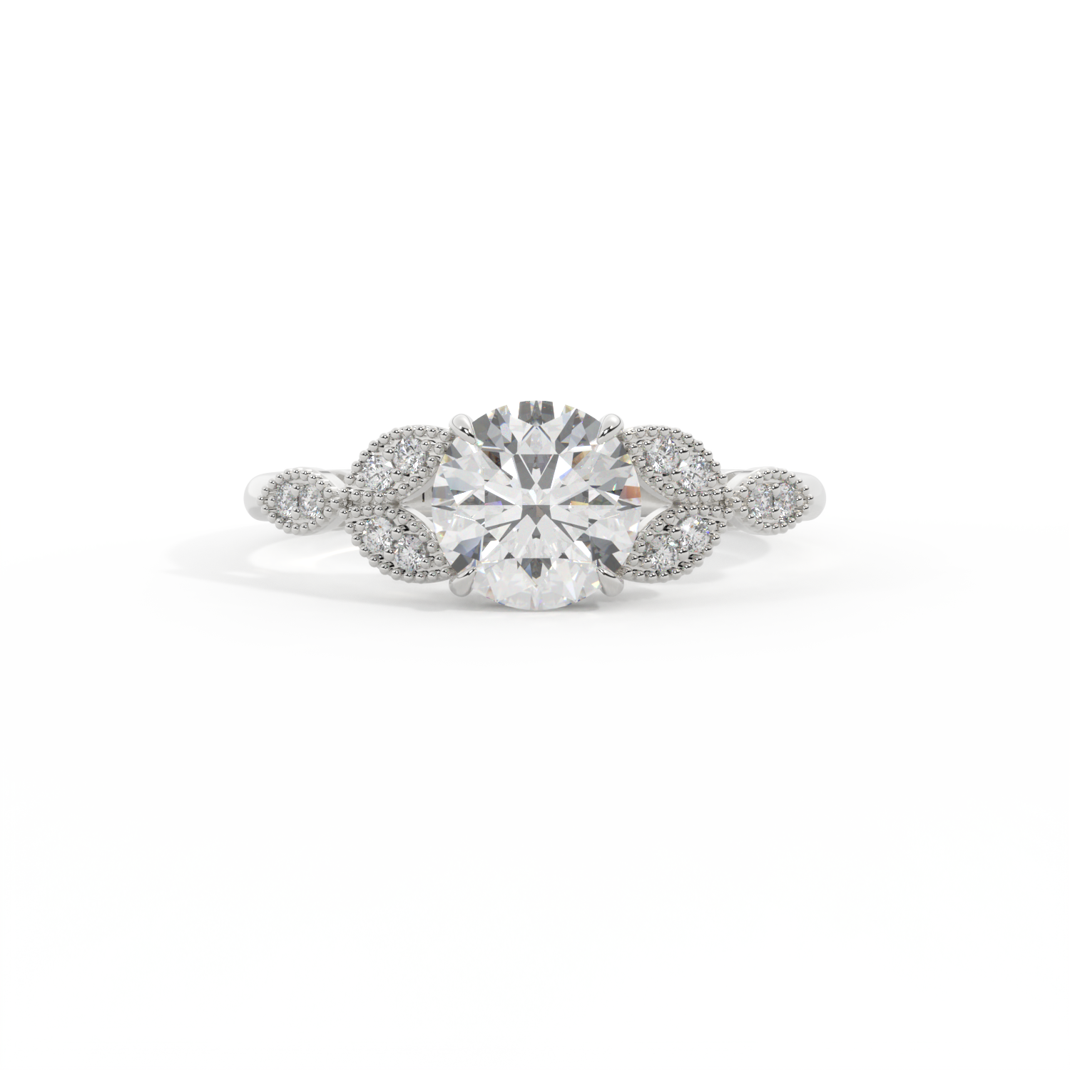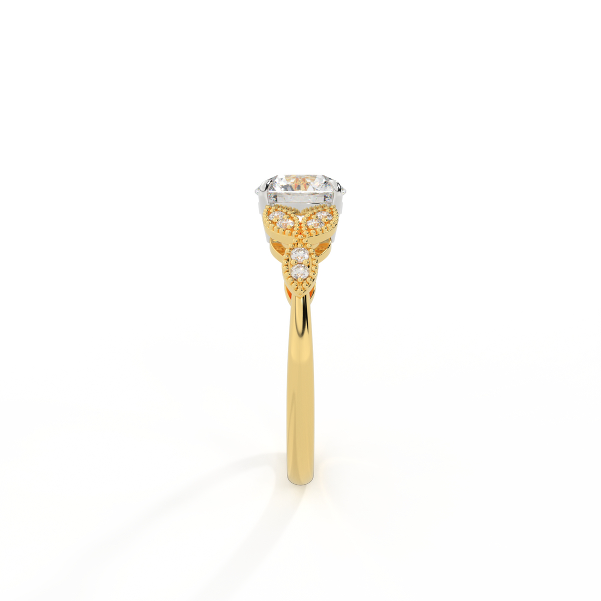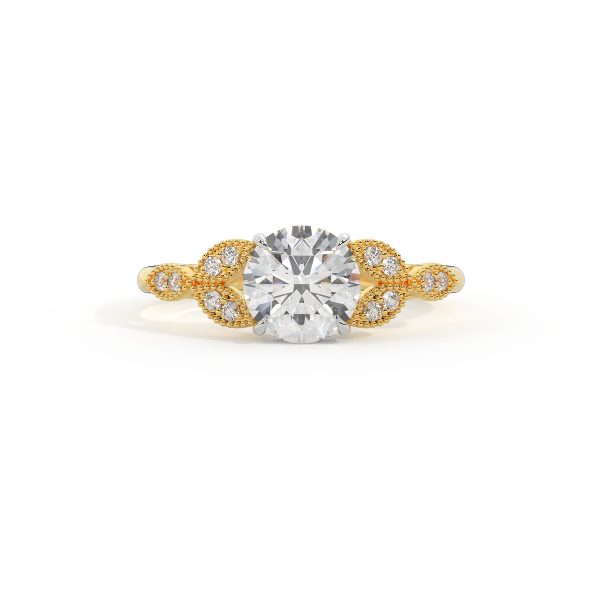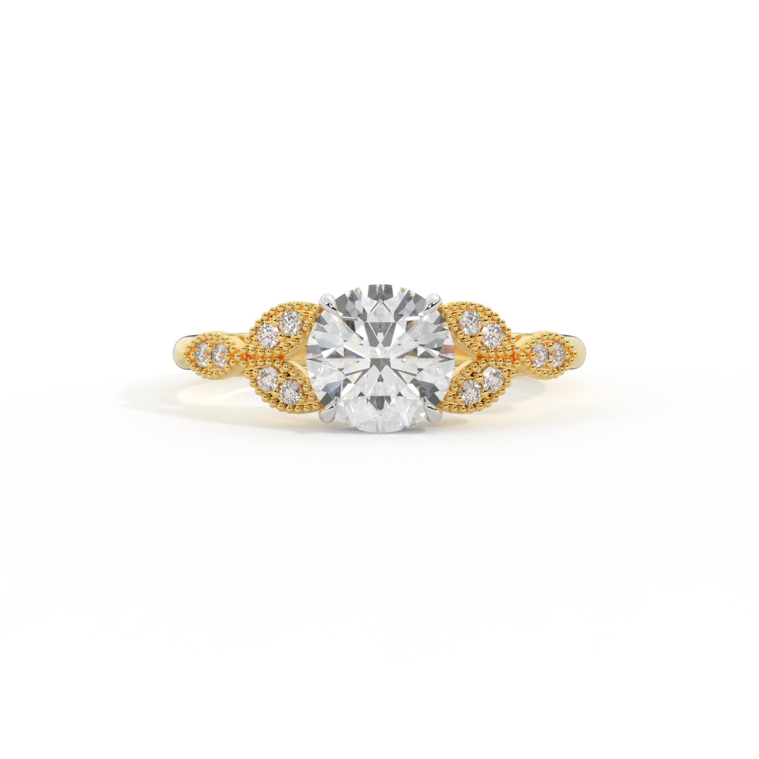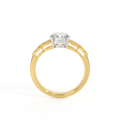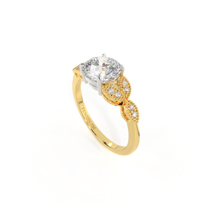 Lab Grown Solar Diamond Floral Round Cut Diamond 18k Yellow Gold Ring