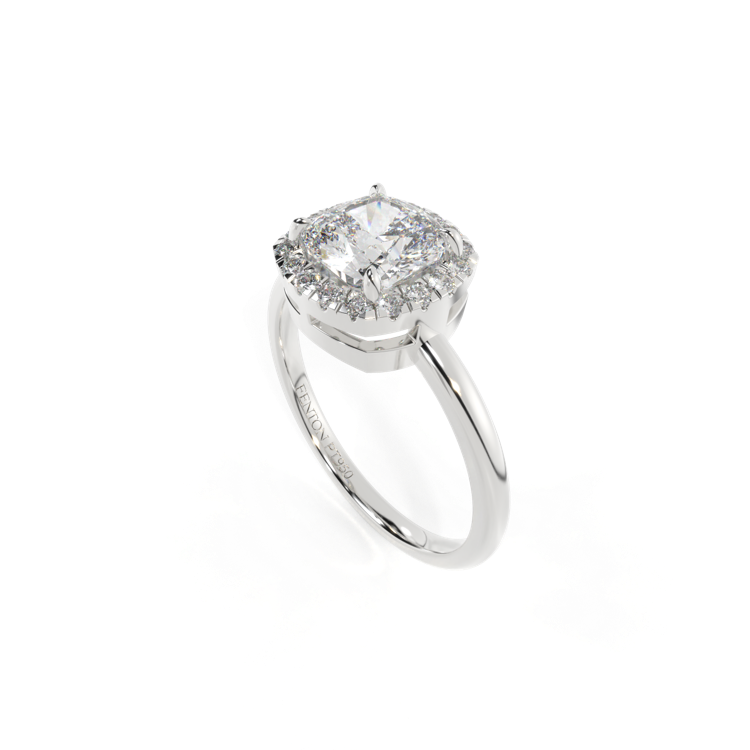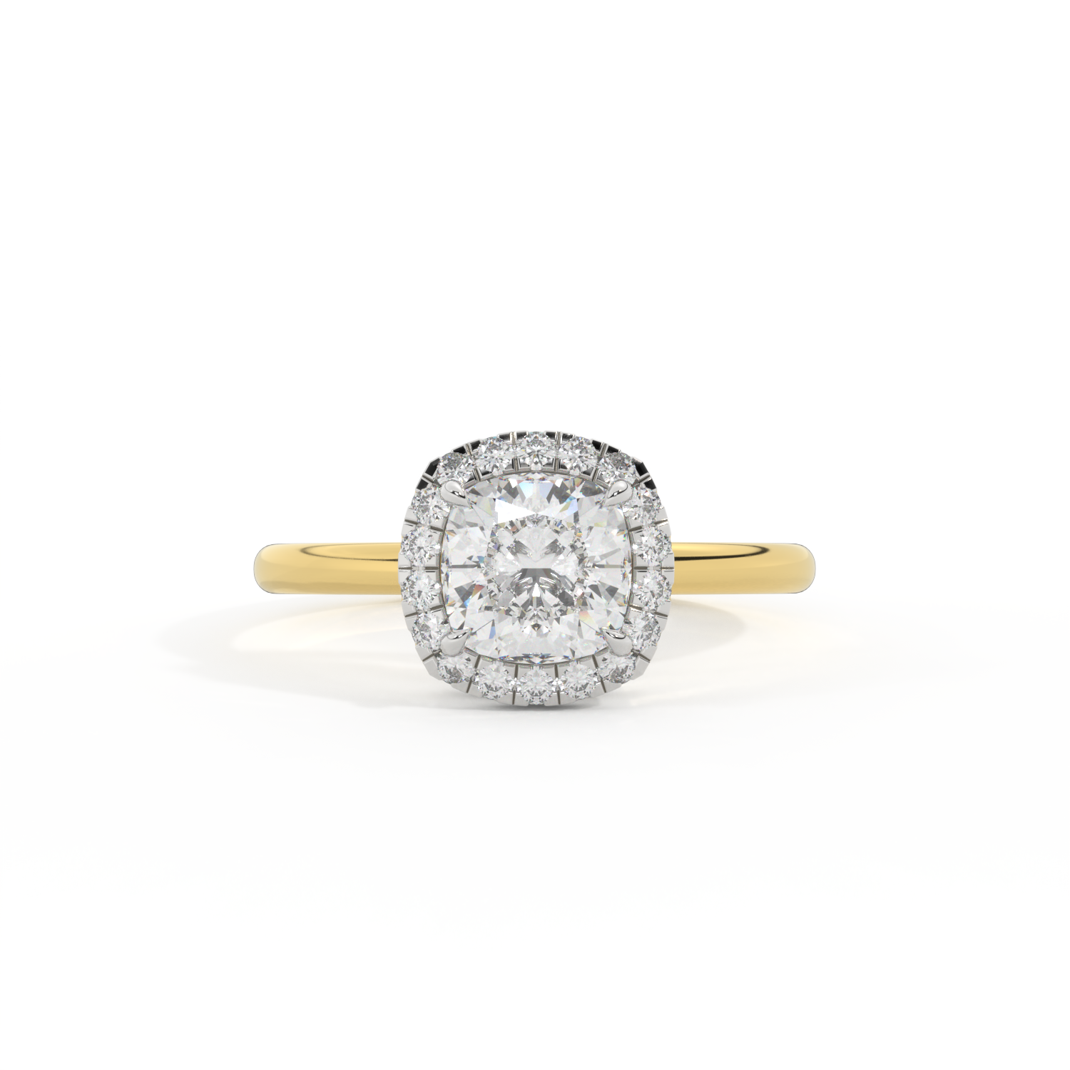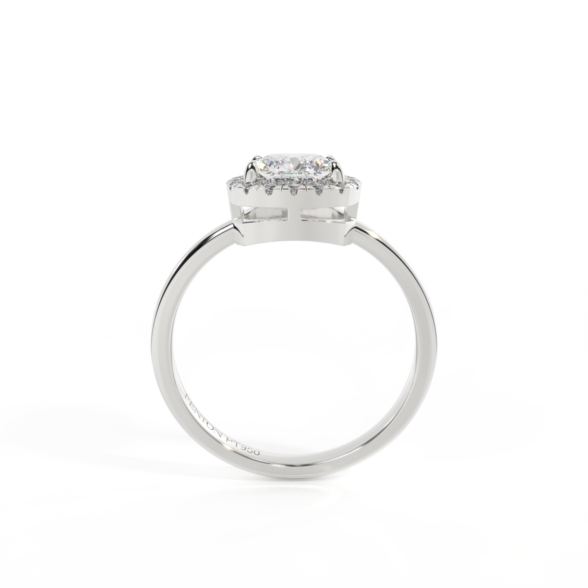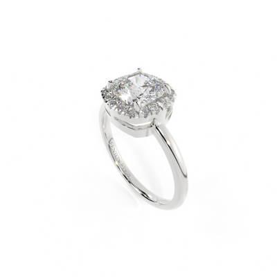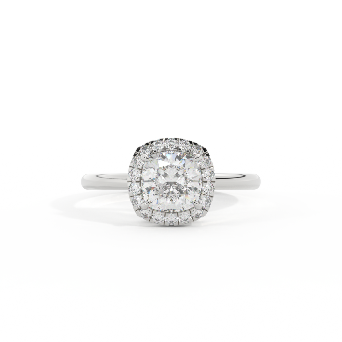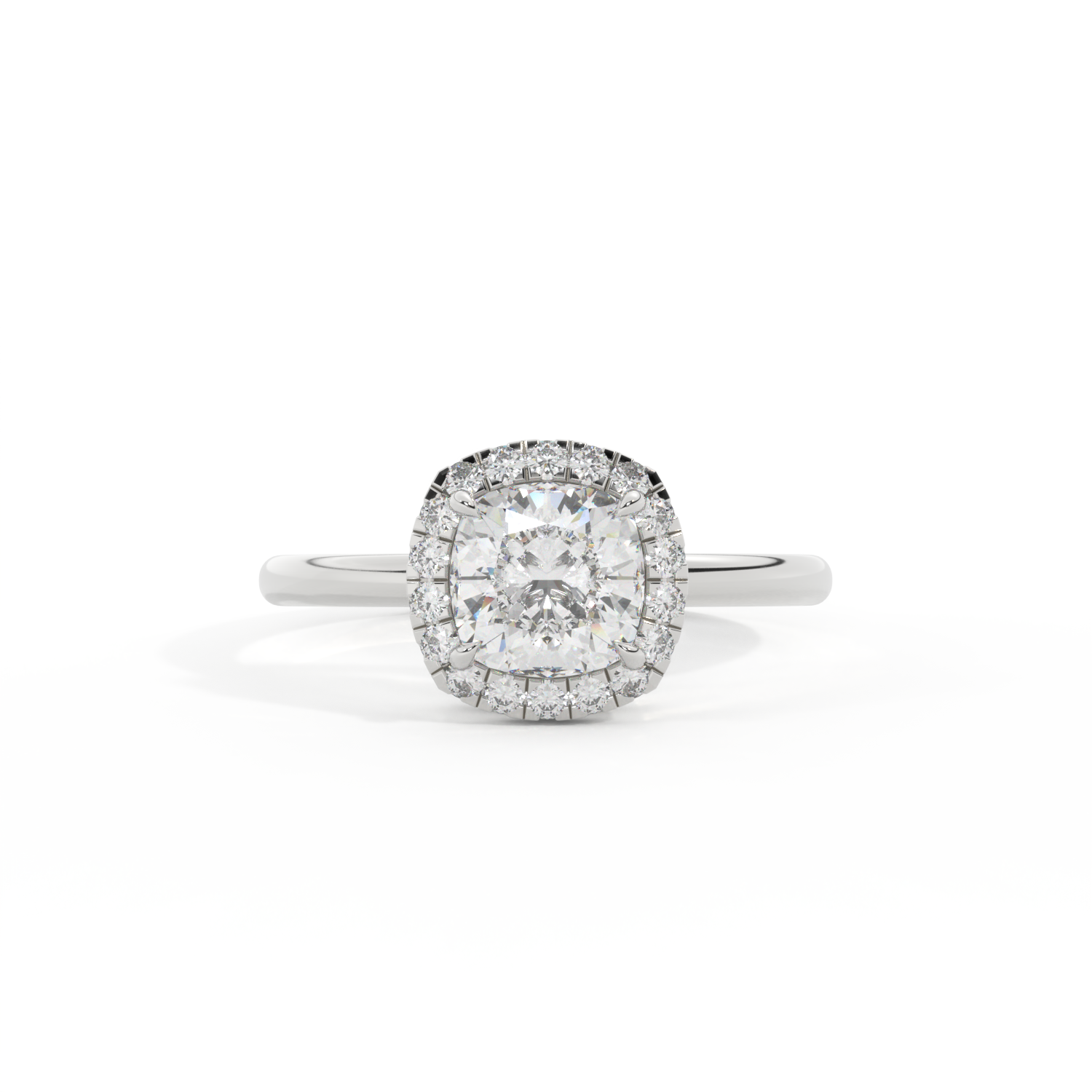 Lab Grown Solar Diamond Halo Cushion Cut Diamond Platinum Ring