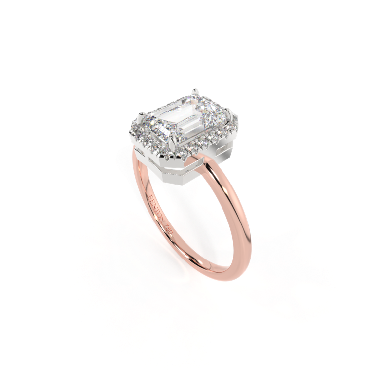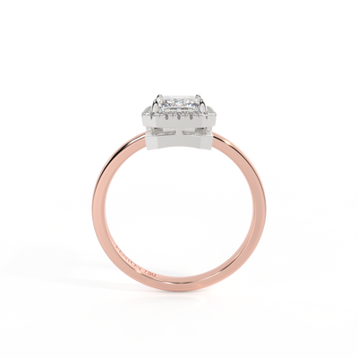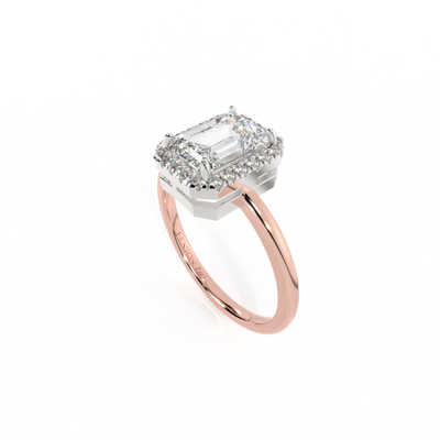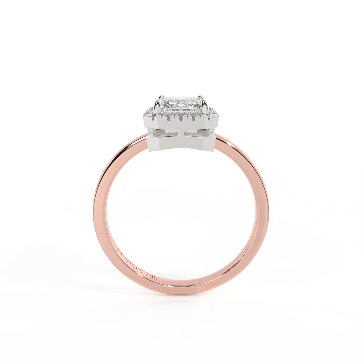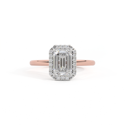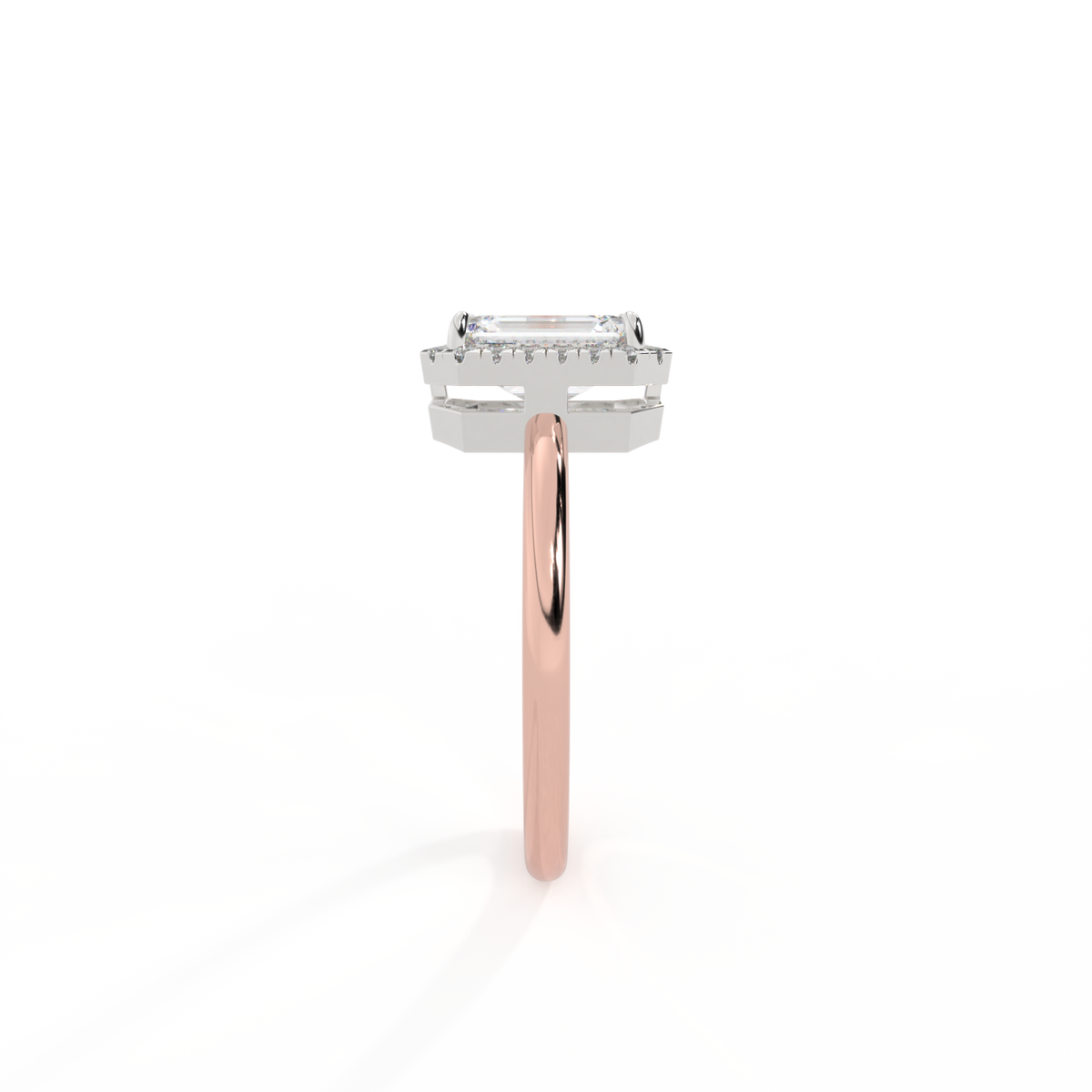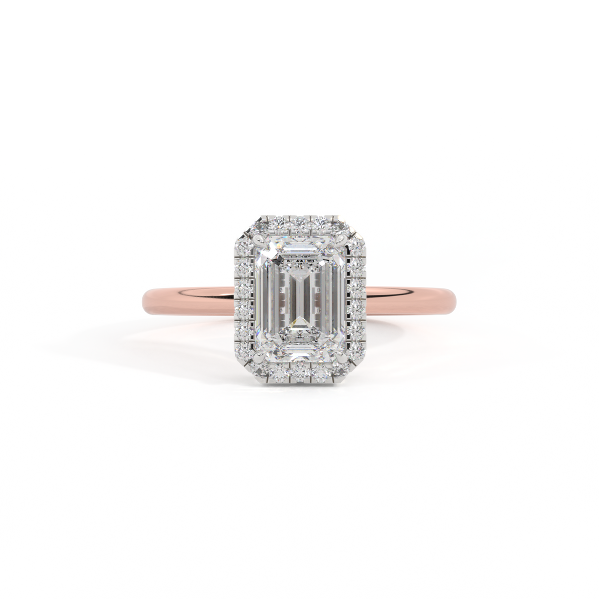 Lab Grown Solar Diamond Halo Emerald Cut Diamond 18k Rose Gold Ring