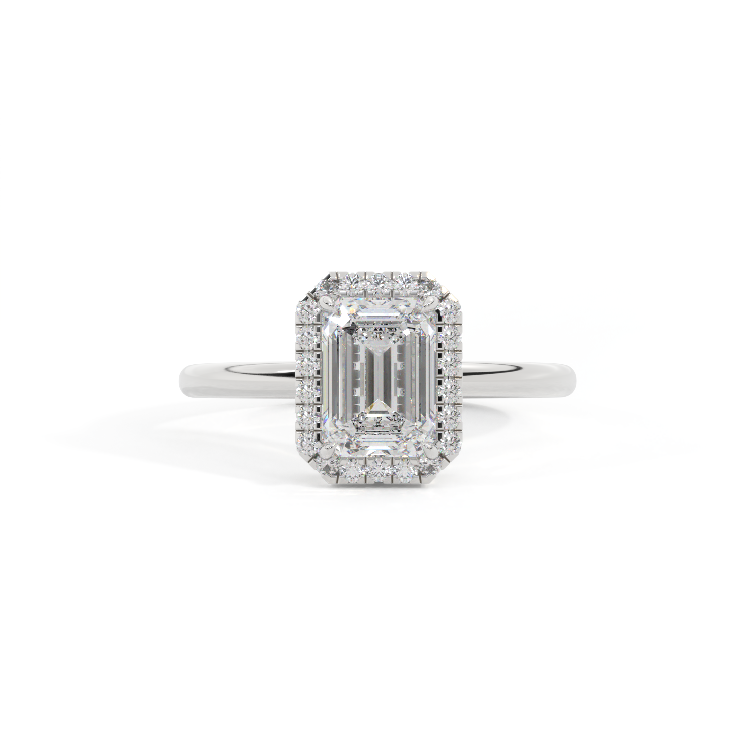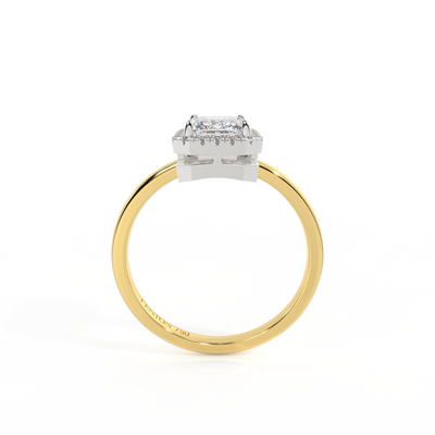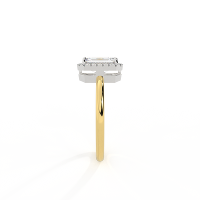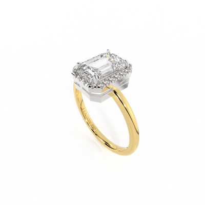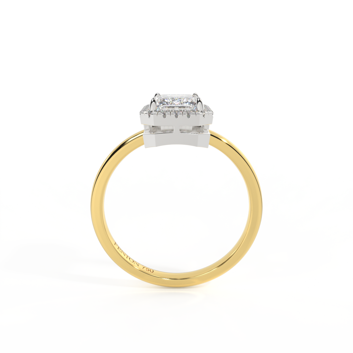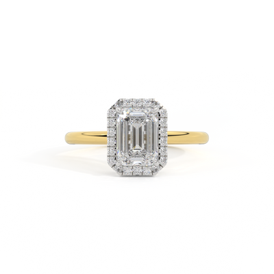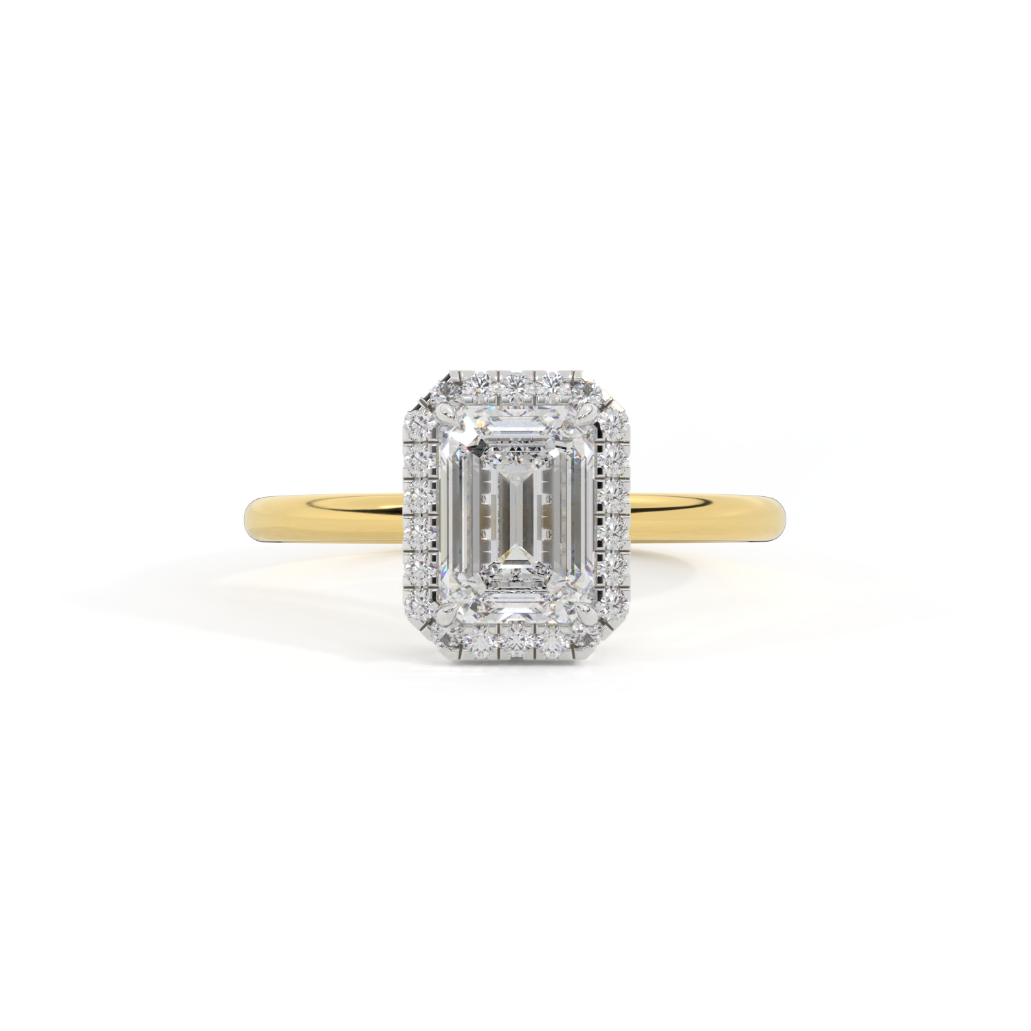 Lab Grown Solar Diamond Halo Emerald Cut Diamond 18k Yellow Gold Ring