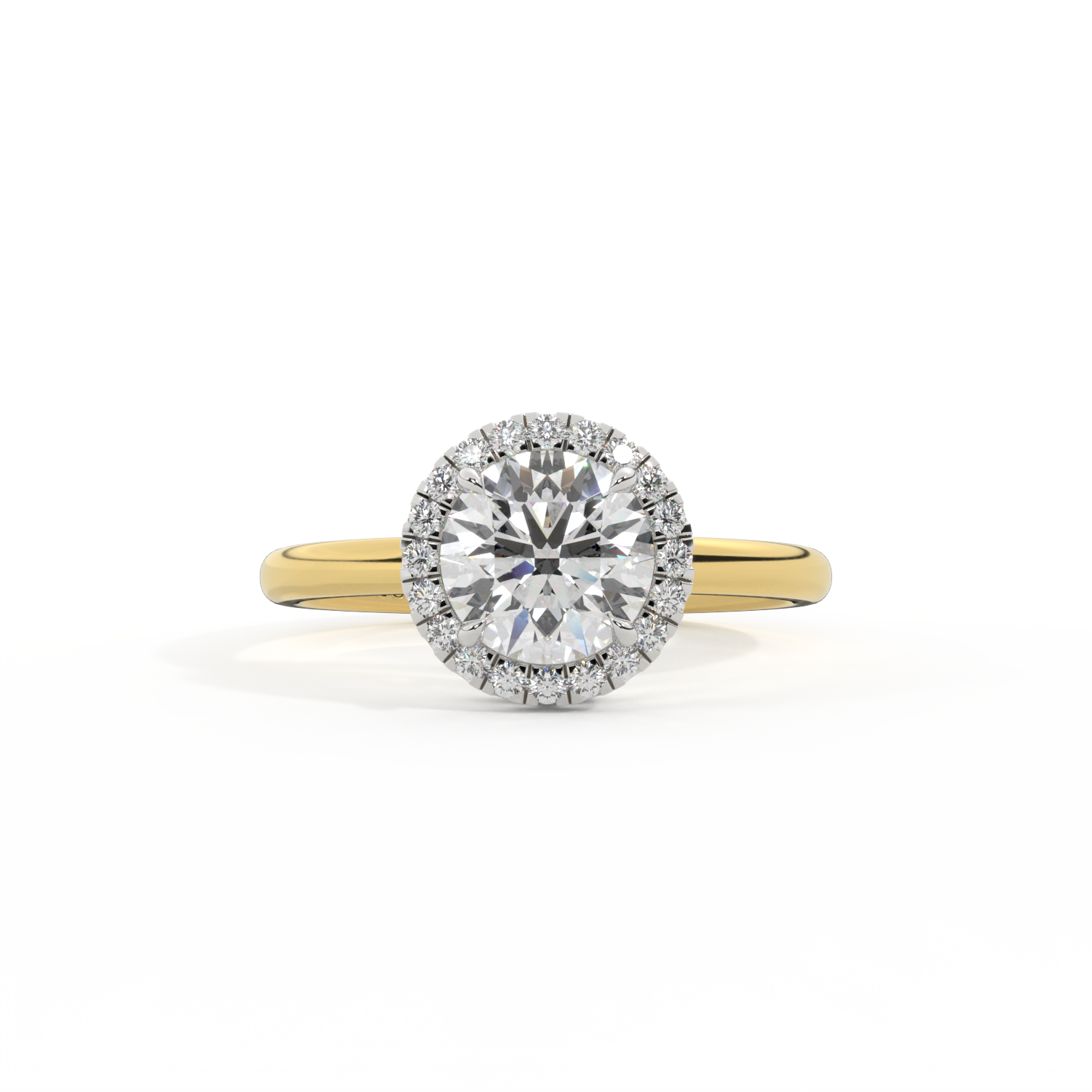 Lab Grown Solar Diamond Halo Round Cut Diamond 18k Yellow Gold Ring