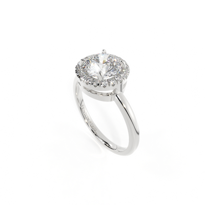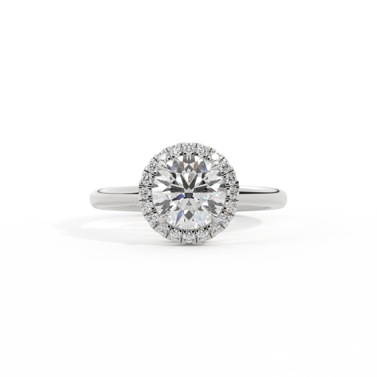 Lab Grown Solar Diamond Halo Round Cut Diamond Platinum Ring