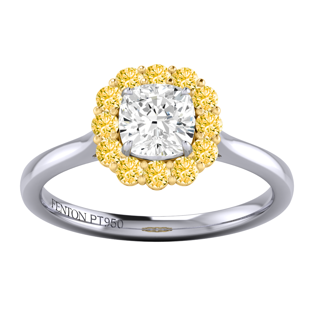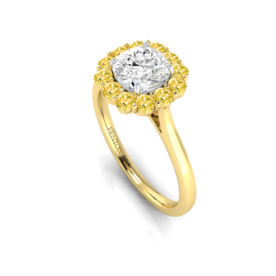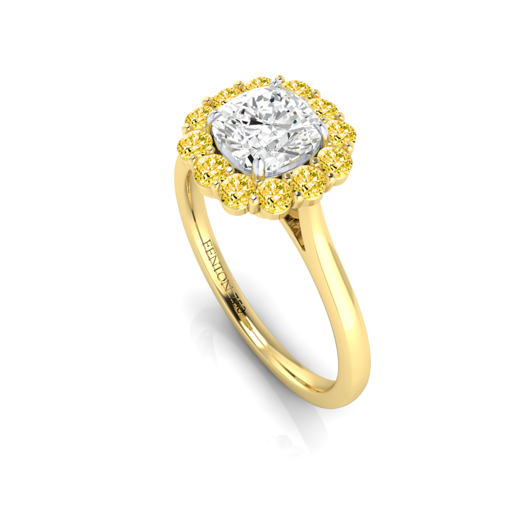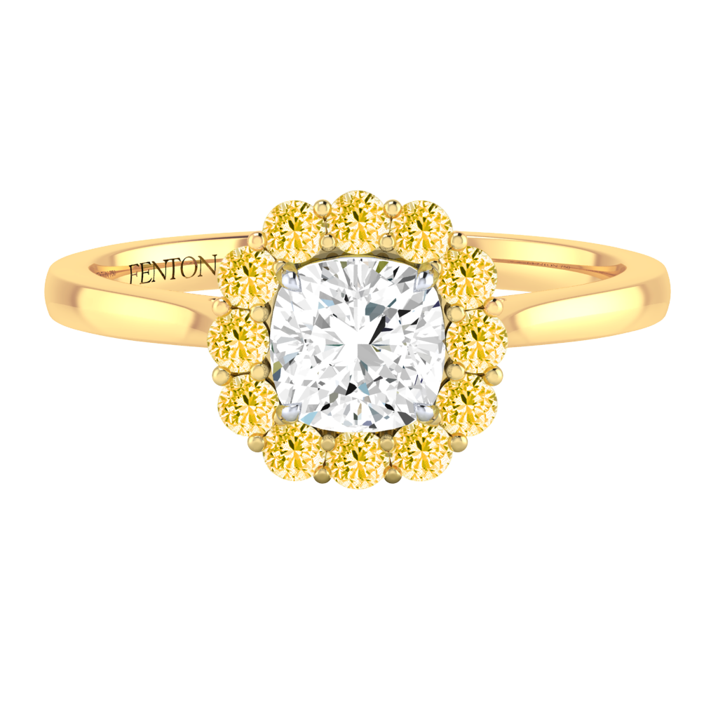 Lab Grown Solar Diamond Mayfair Cushion Cut Diamond and Yellow Sapphire 18k Yellow Gold Ring