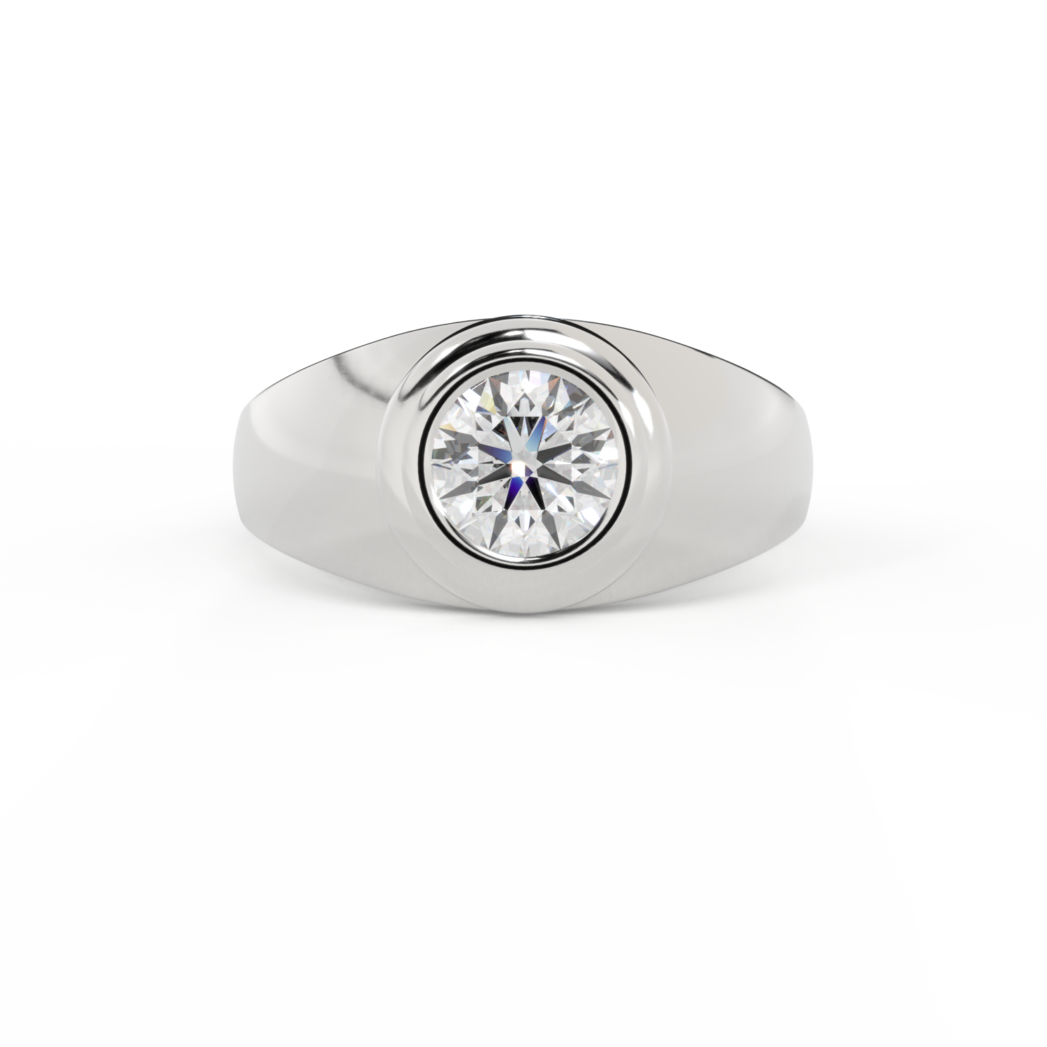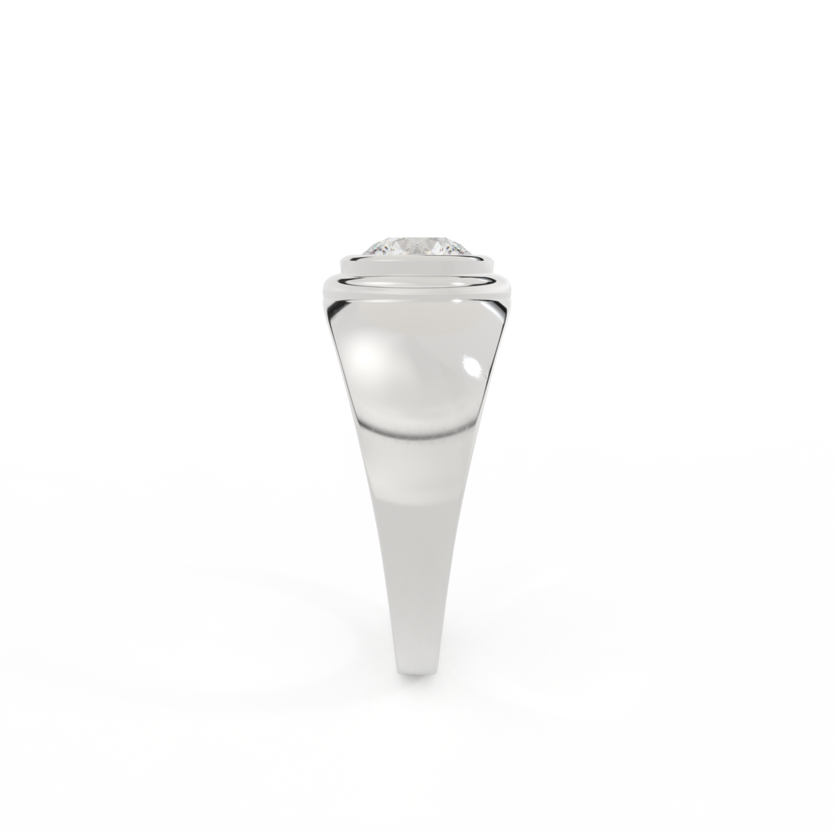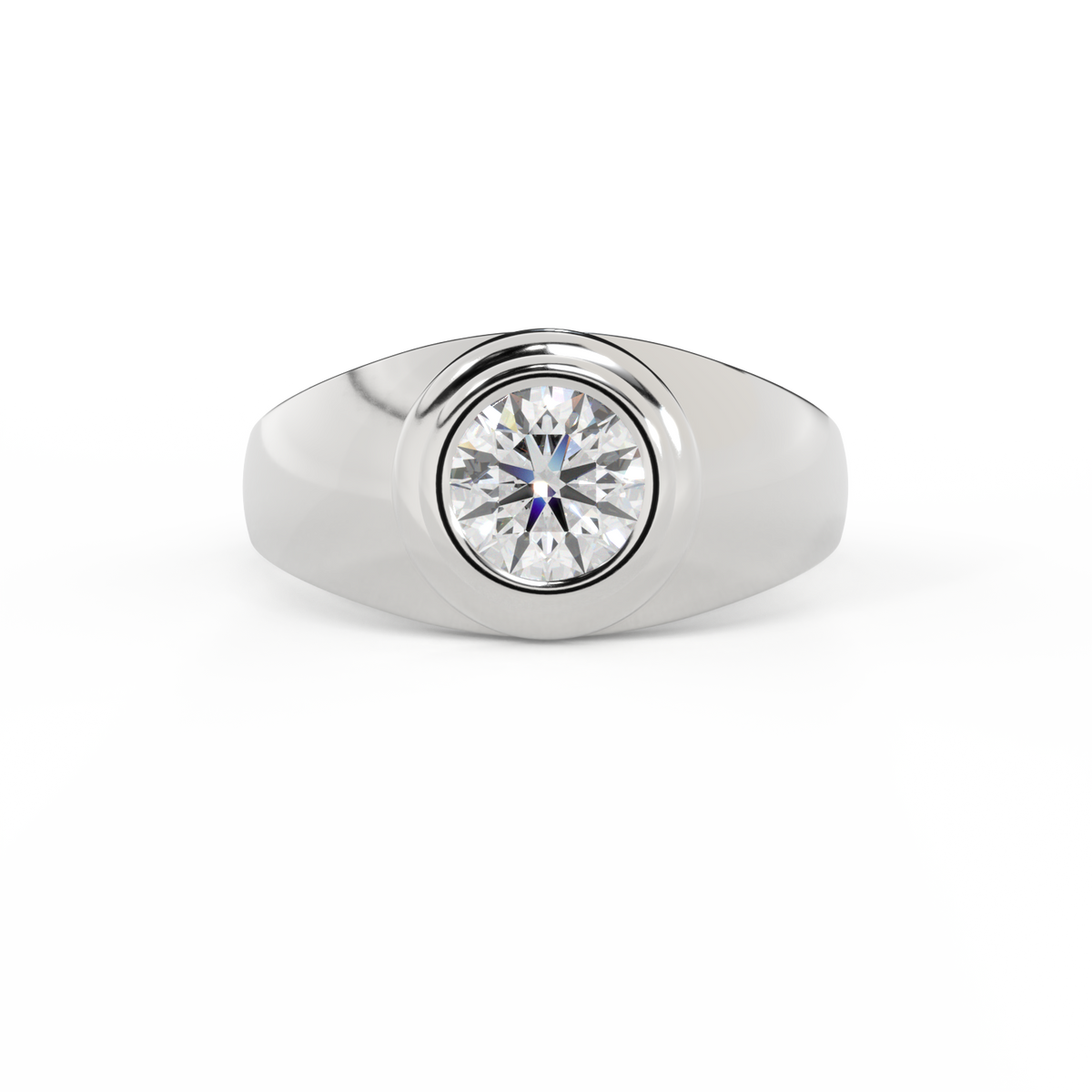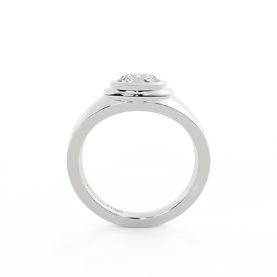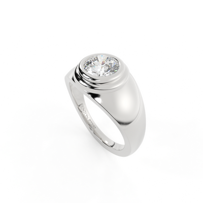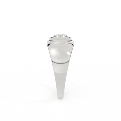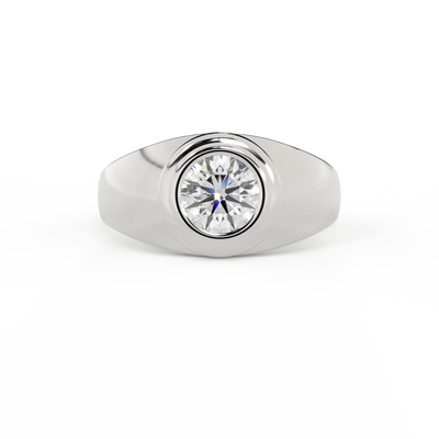 Lab Grown Solar Diamond Signet Round Cut White Gold Ring