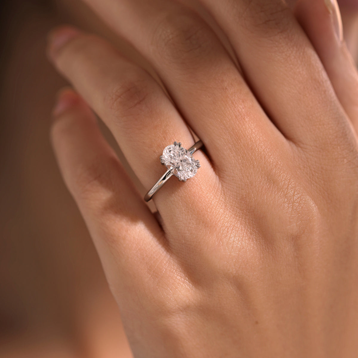 Lab Grown Solar Diamond Solitaire Oval Cut Platinum Ring