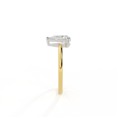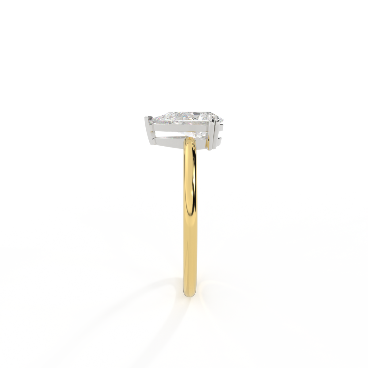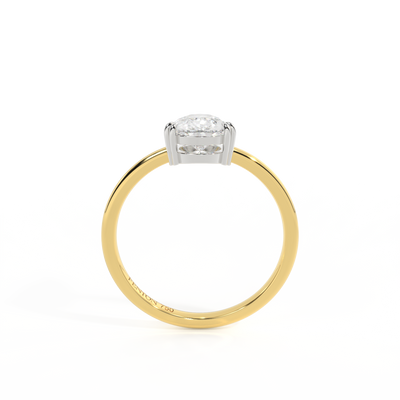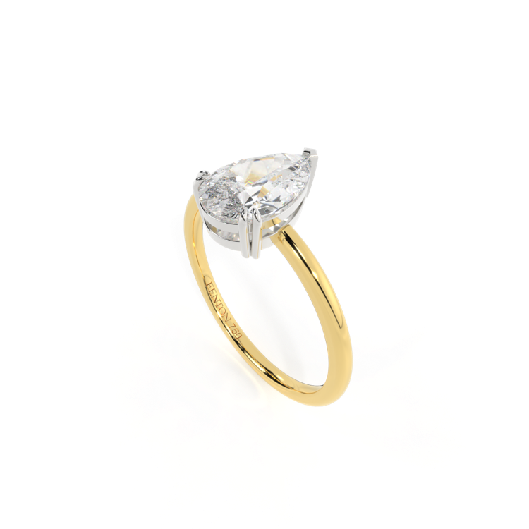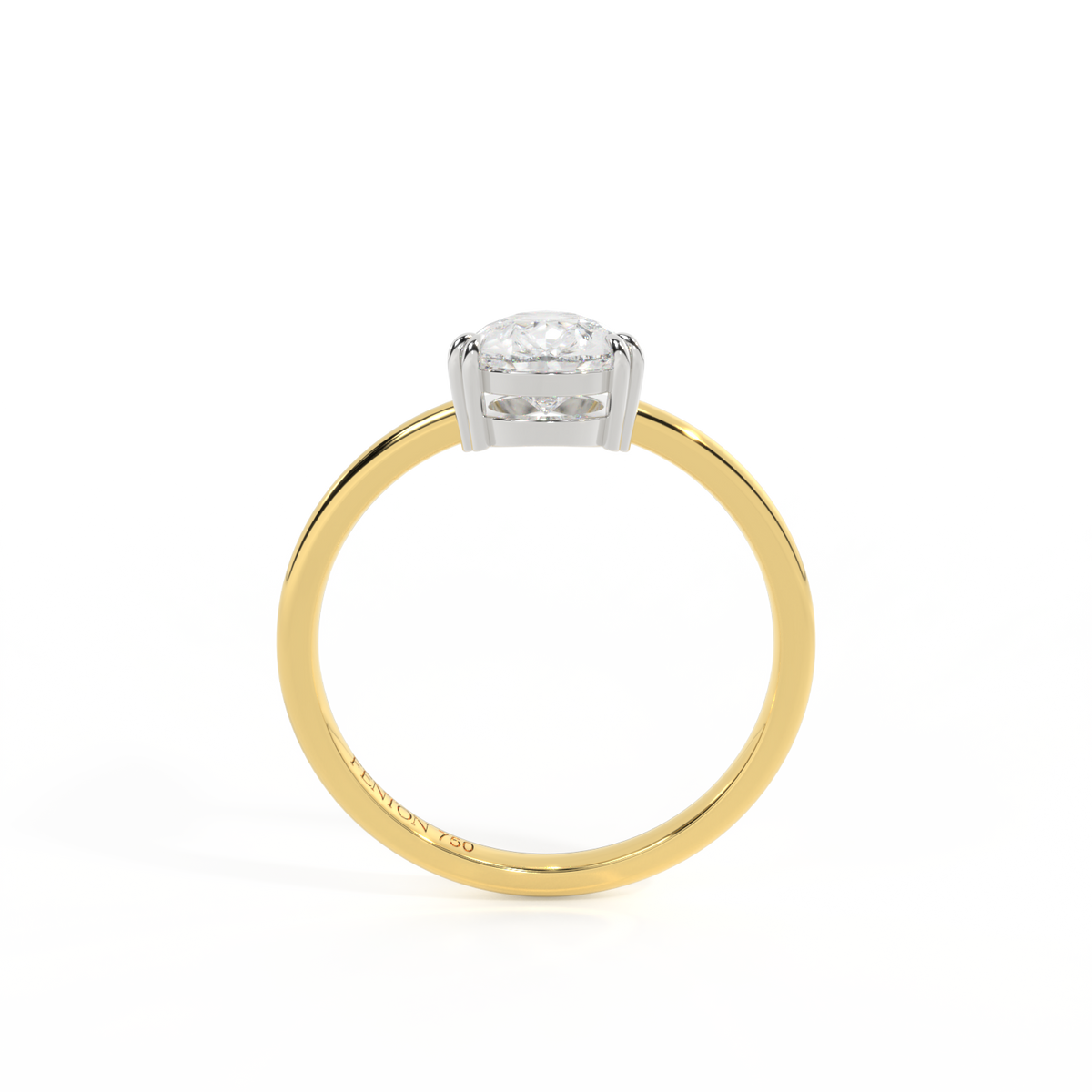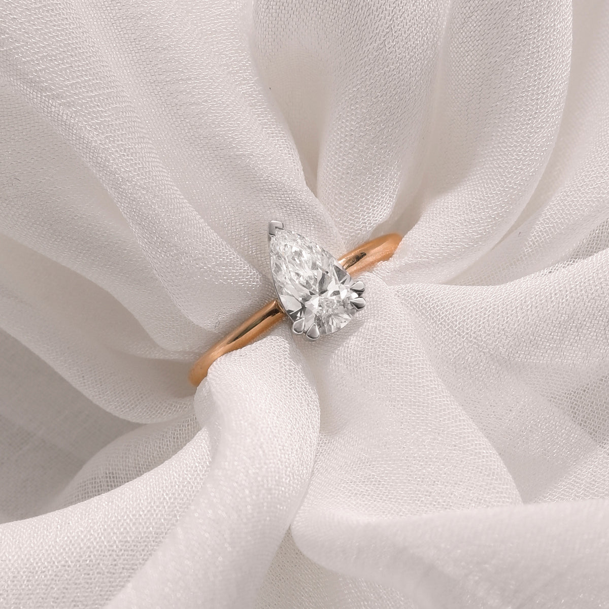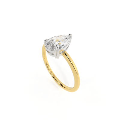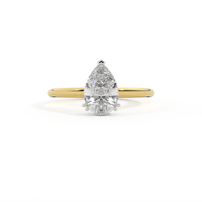 Lab Grown Solar Diamond Solitaire Pear Cut 18k Yellow Gold Ring