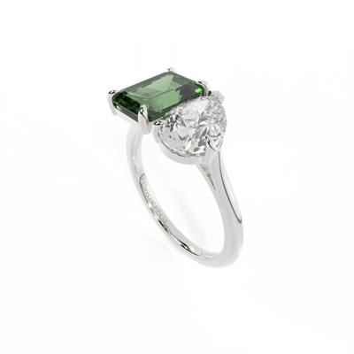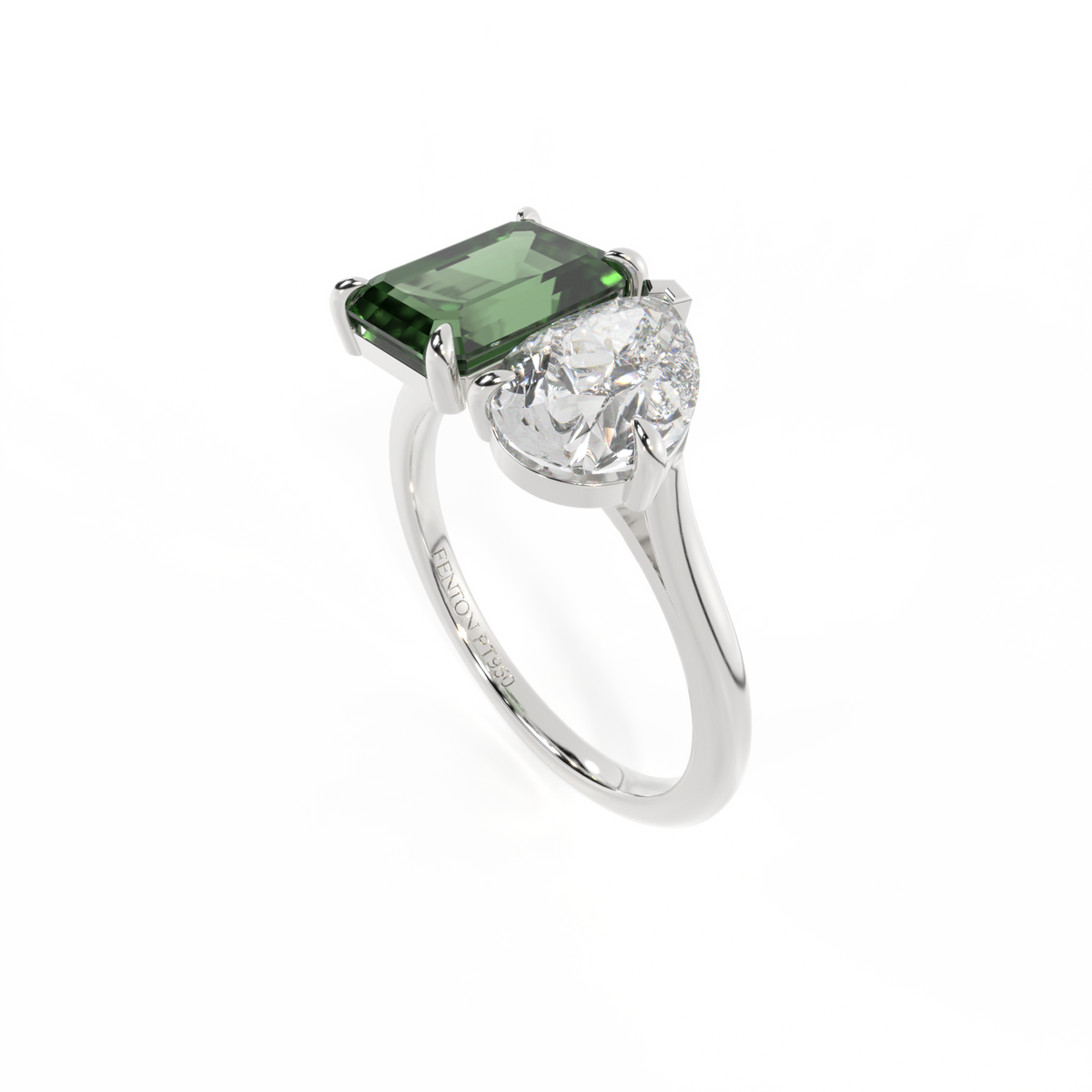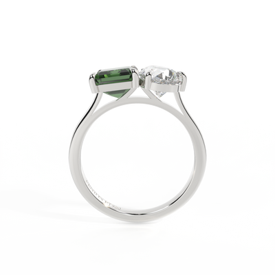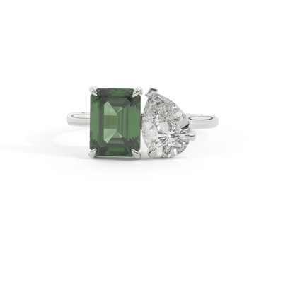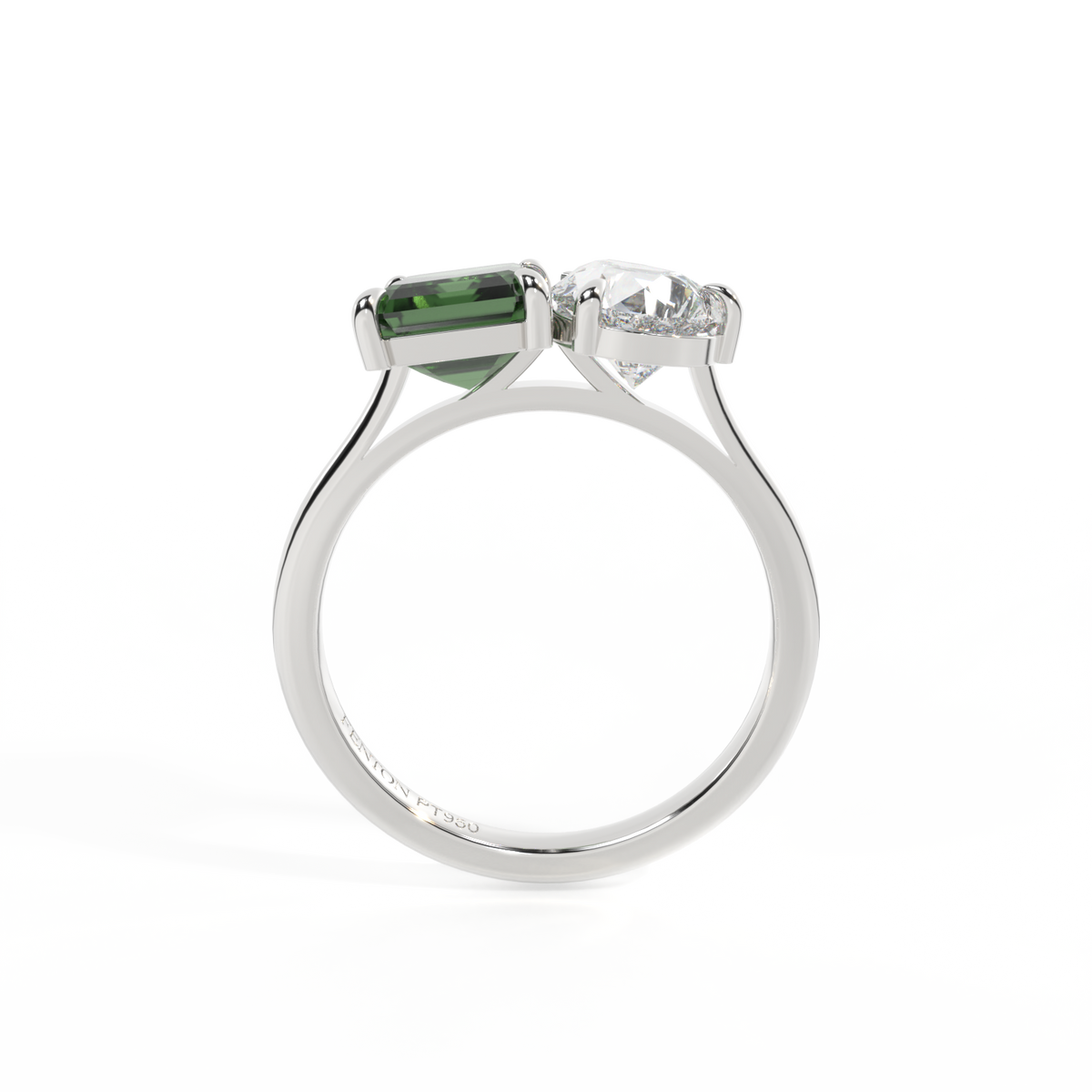 Lab Grown Solar Diamond Toi Et Moi Emerald Green Sapphire Platinum Ring