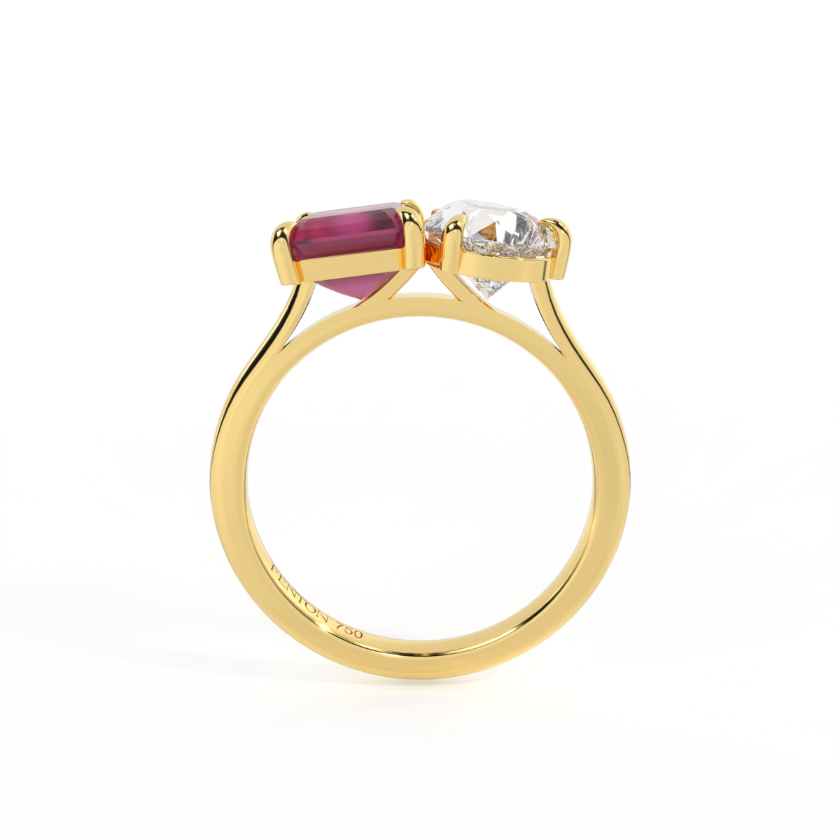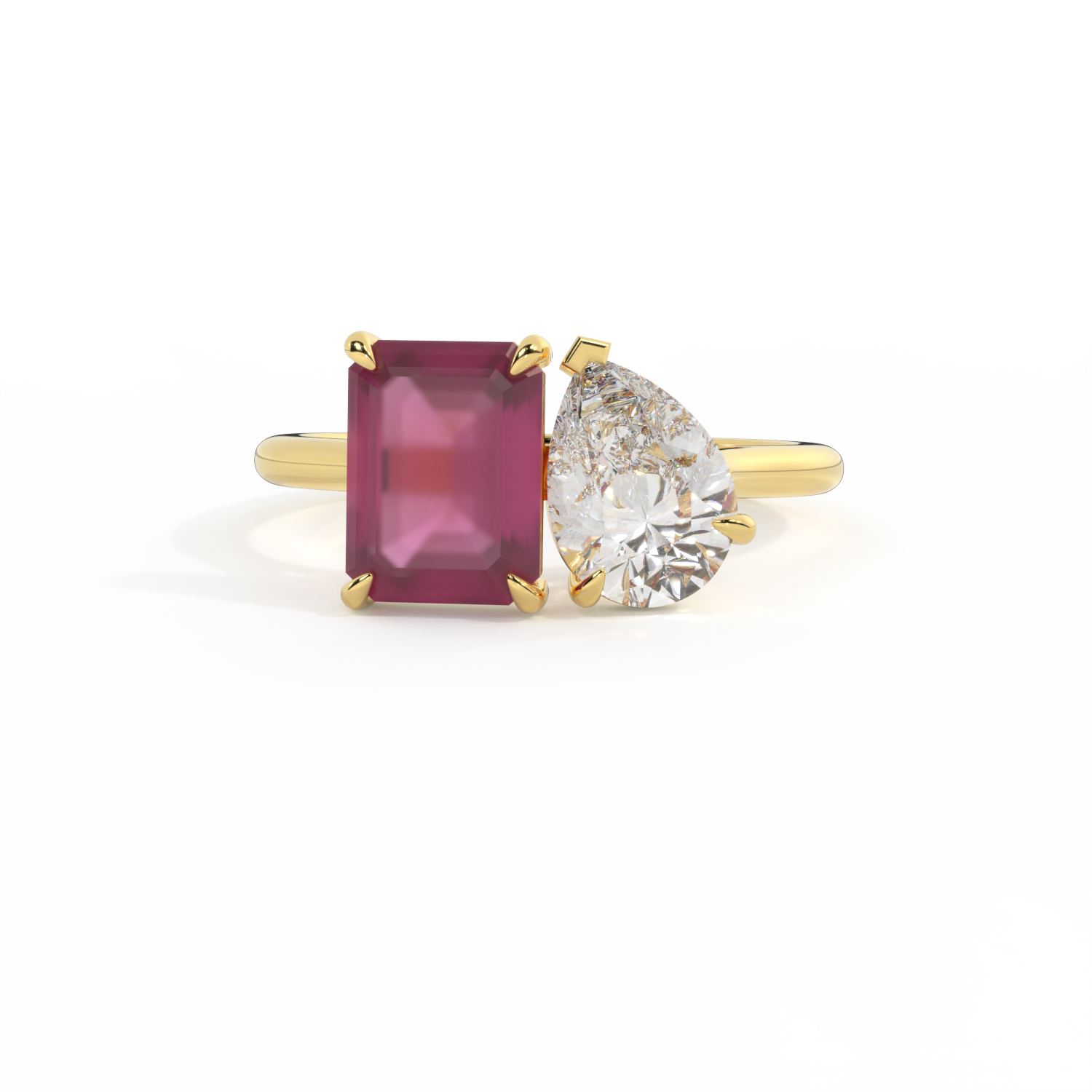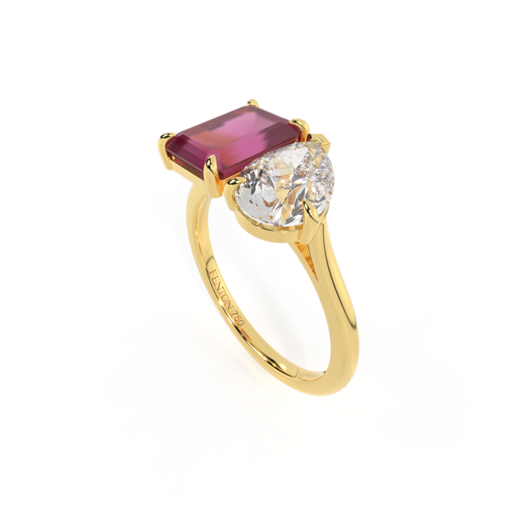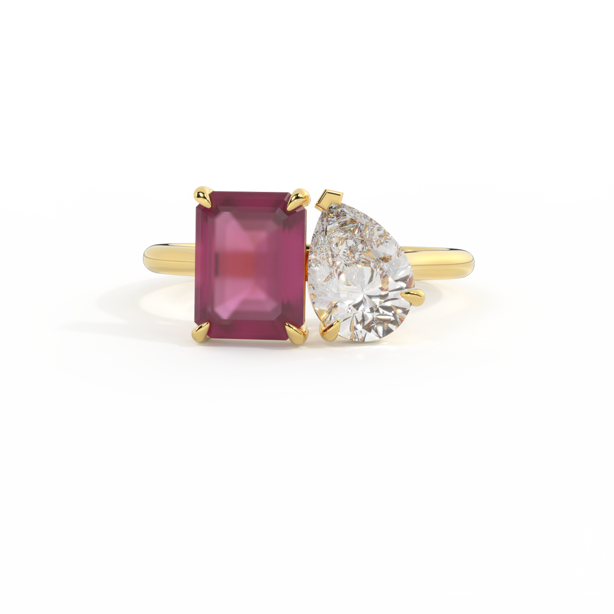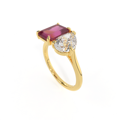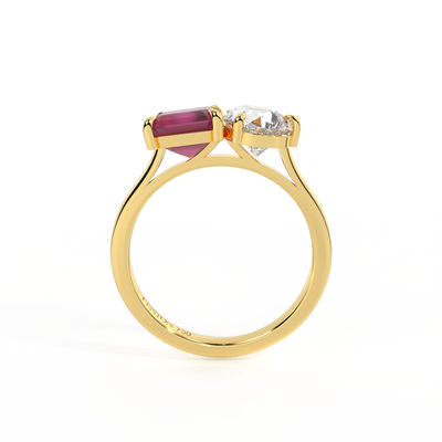 Lab Grown Solar Diamond Toi Et Moi Emerald Ruby 18K Yellow Gold Ring