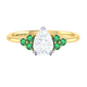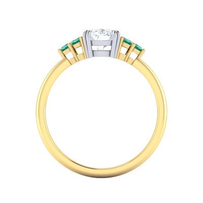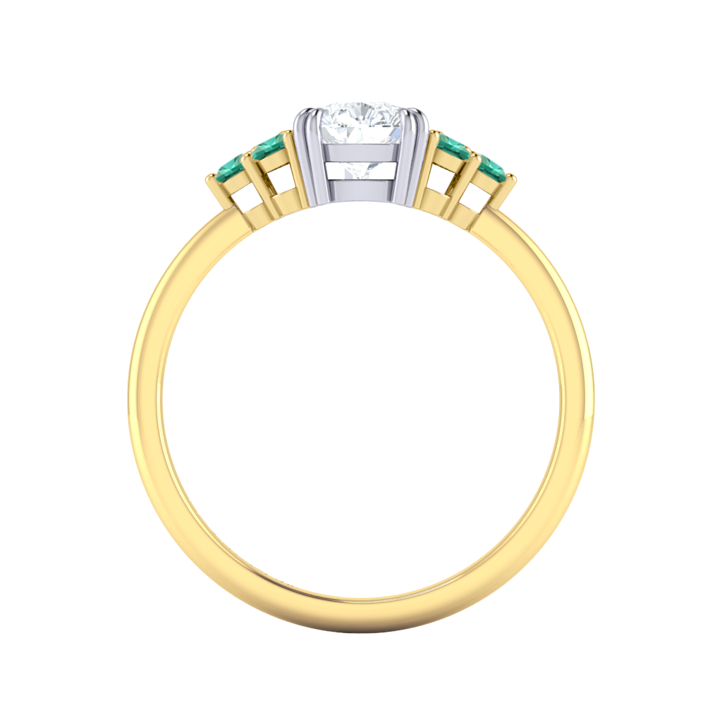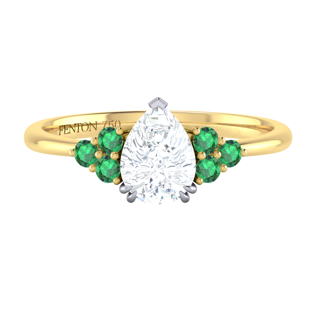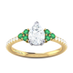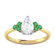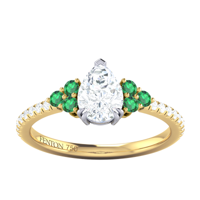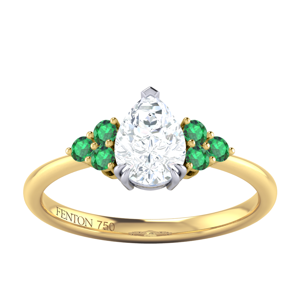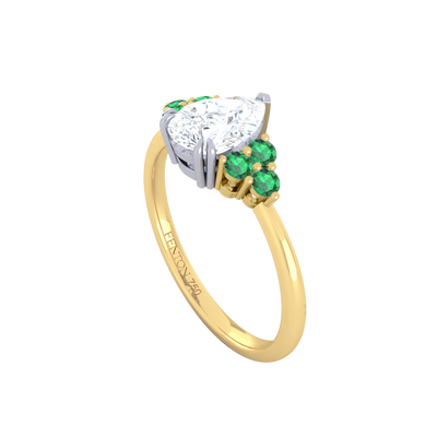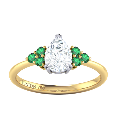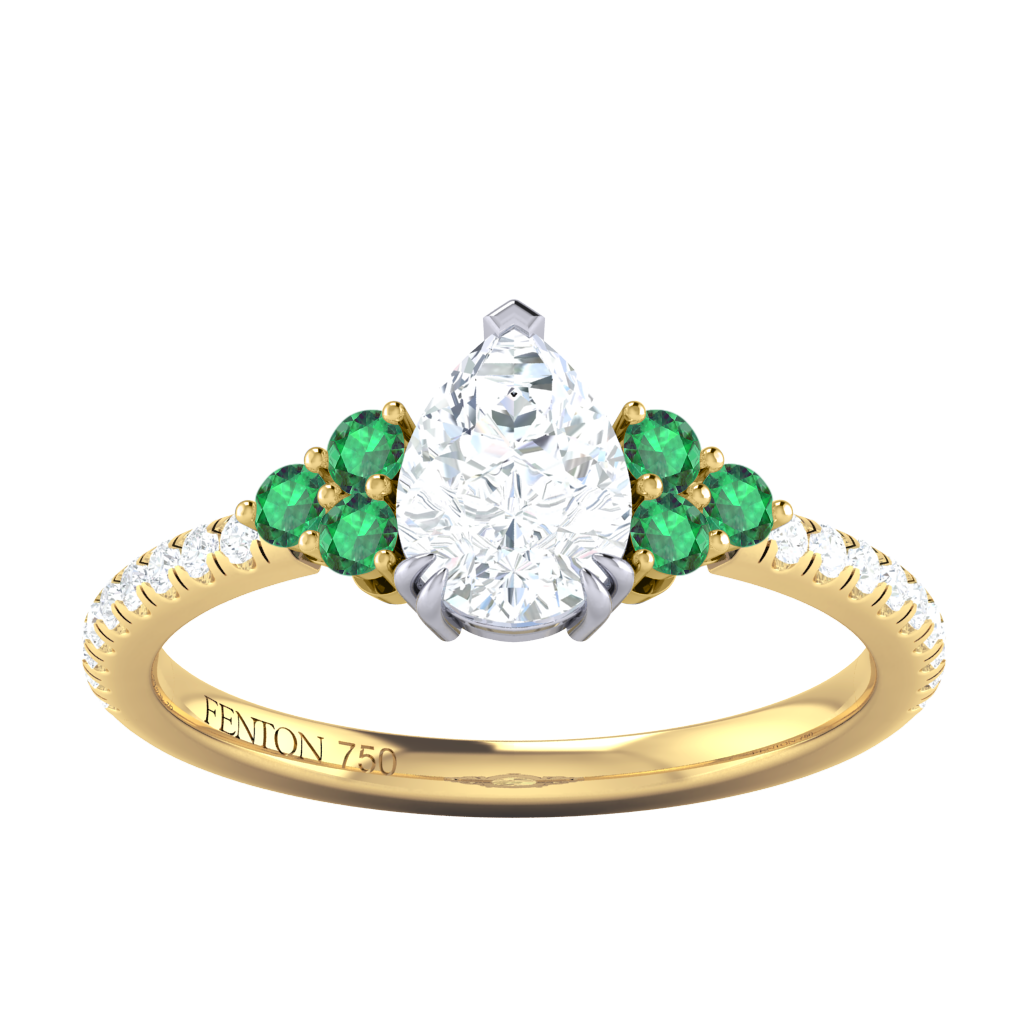 Lab Grown Solar Diamond Trefoil Pear Cut Diamond and Emerald 18k Yellow Gold Ring