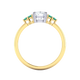 Your glistening undefined Solar Diamond has a GH V/S quality rating and is framed on either side by a trefoil cluster of three 1.8mm round brilliant cut Emerald stones, each securely held into place in a claw setting. The design draws the eye to the glistening Solar Diamond center stone, sitting proudly in a classic open gallery setting crafted from solid 18K Yellow Gold. The open setting of this design allows the light to reflect in all directions, creating a lustrous and sparkling look.