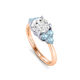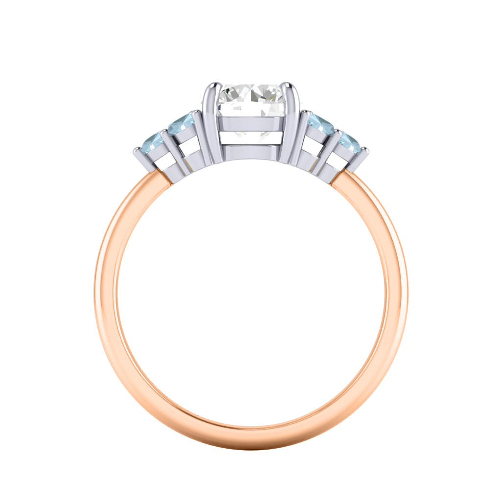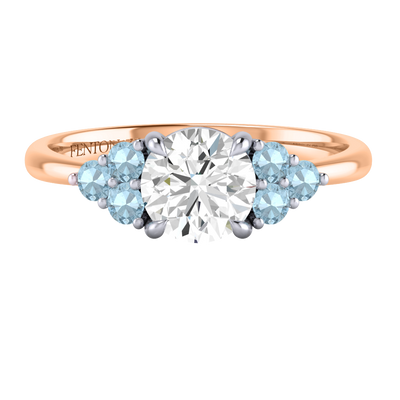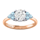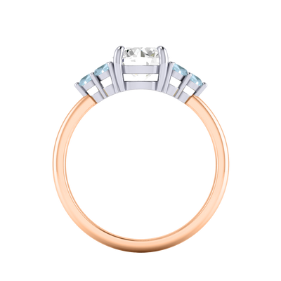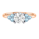 Lab Grown Solar Diamond Trefoil Round Cut Diamond and Aquamarine 18k Rose Gold Ring