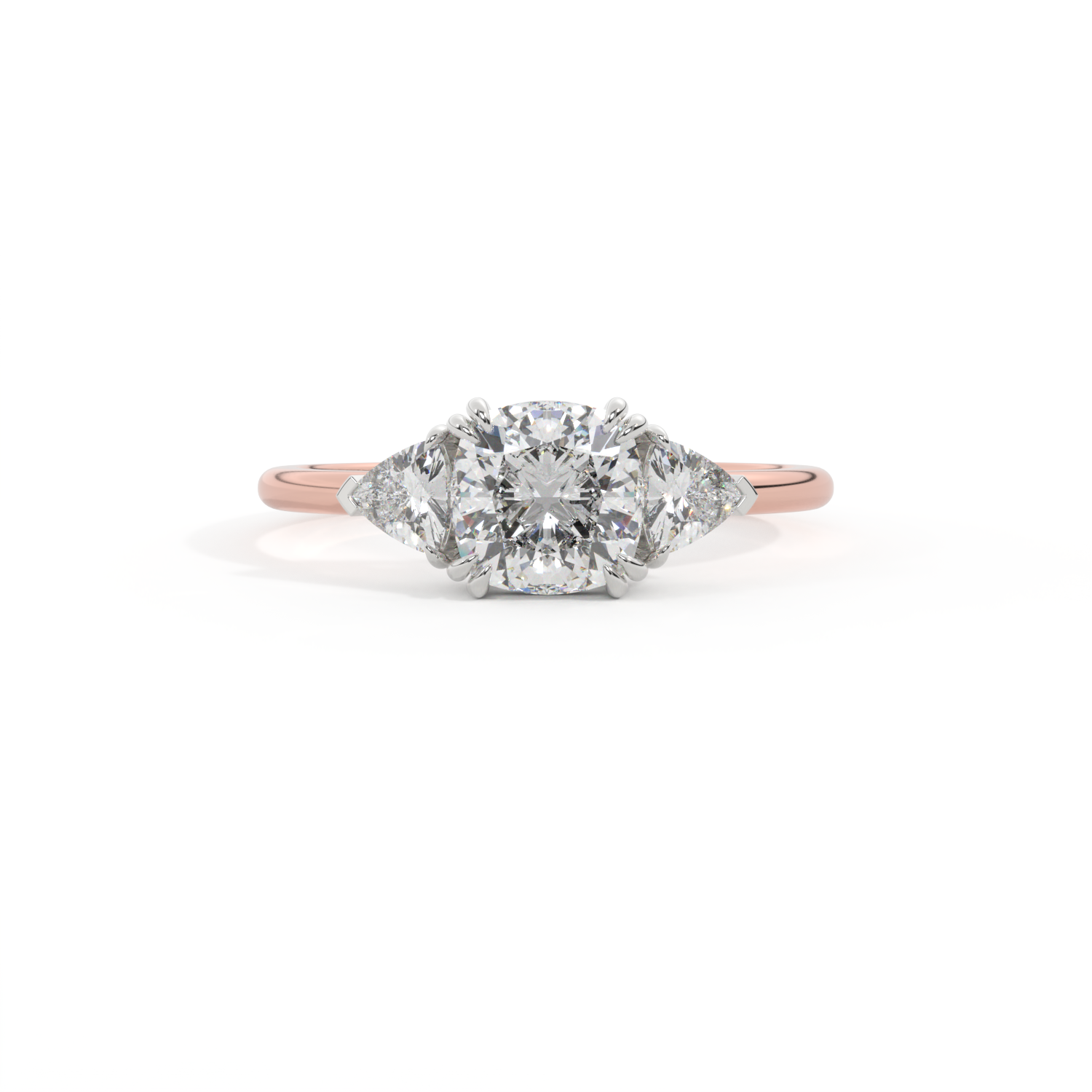 Lab Grown Solar Diamond Trilogy Cushion Cut Diamond 18k Rose Gold Ring