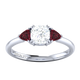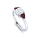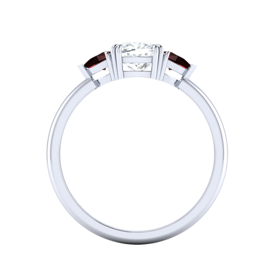 Lab Grown Solar Diamond Trilogy Cushion Cut Diamond and Garnet Platinum Ring