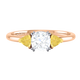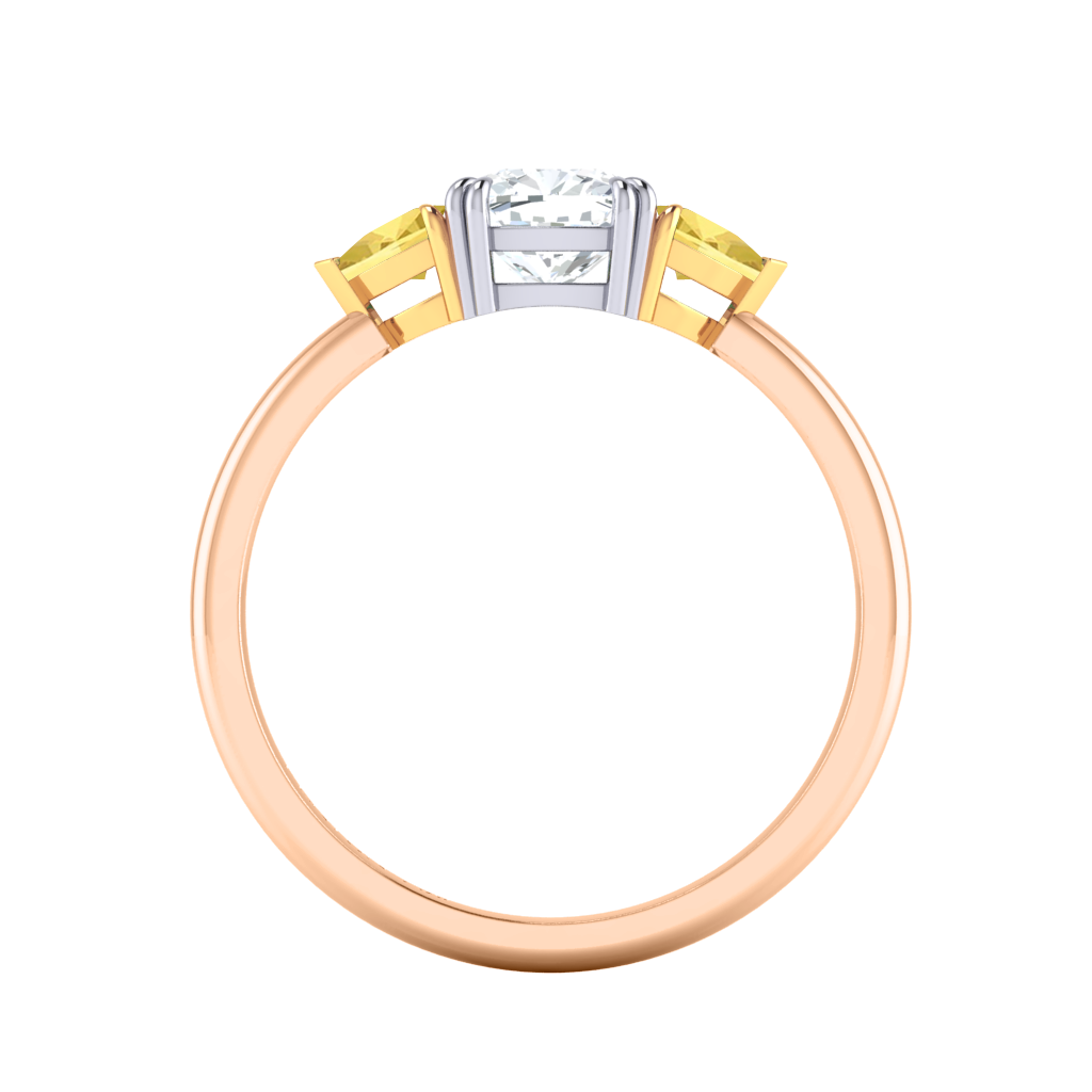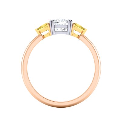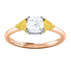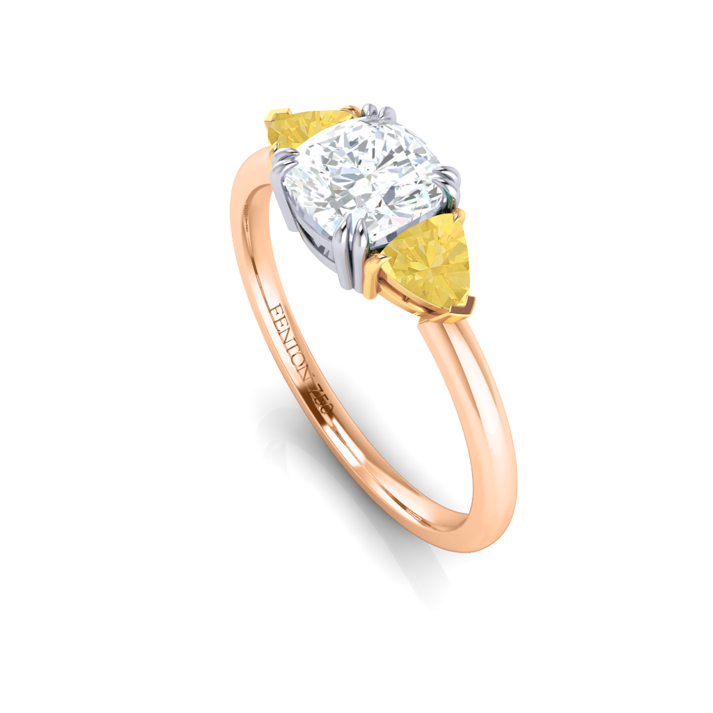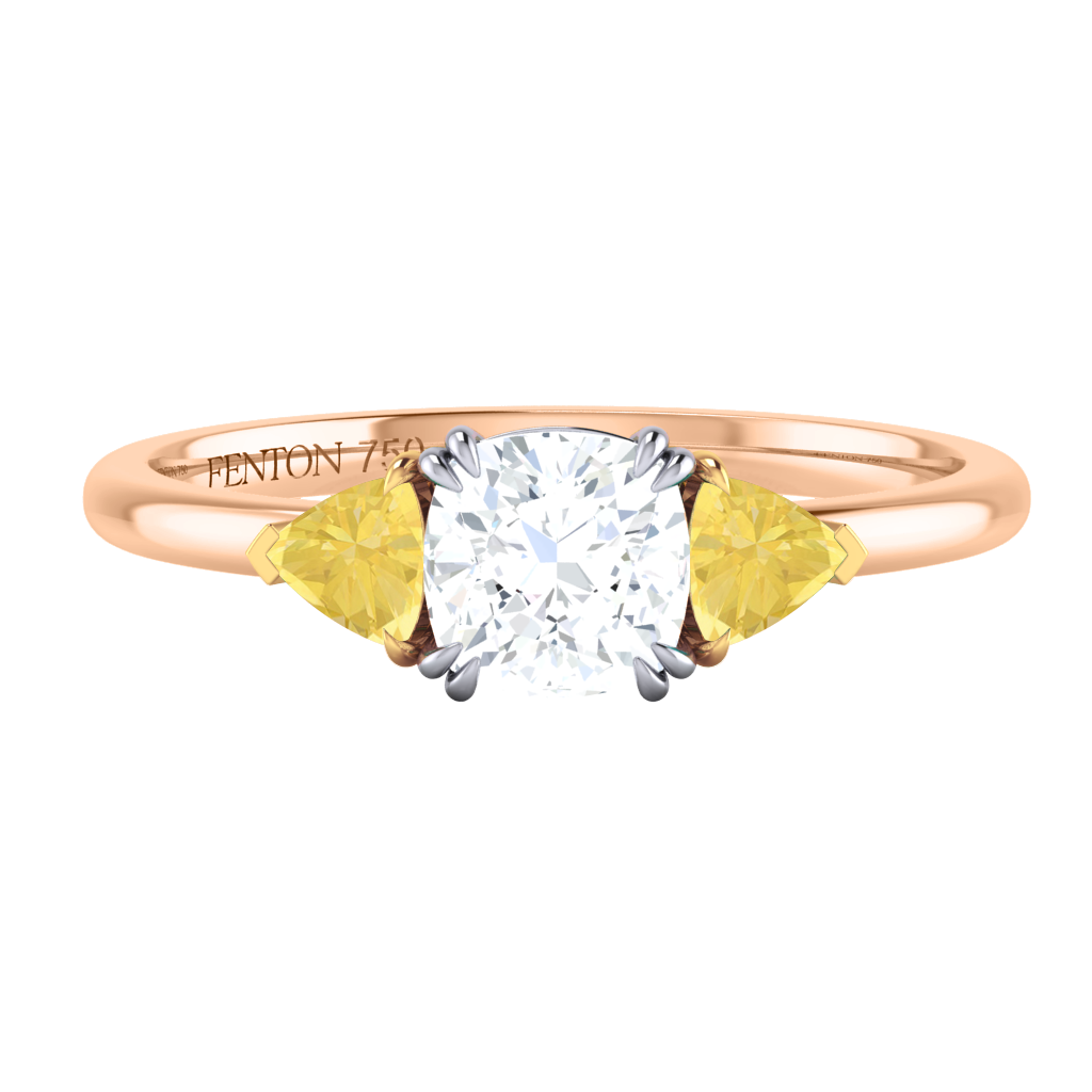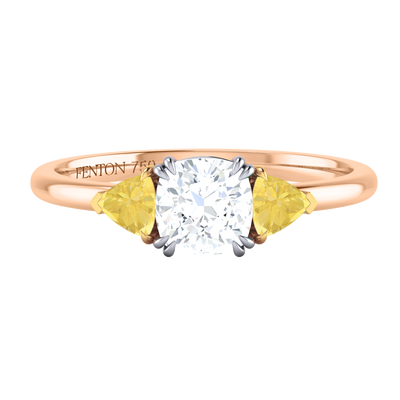 Lab Grown Solar Diamond Trilogy Cushion Cut Diamond and Yellow Sapphire 18k Rose Gold Ring