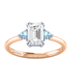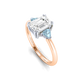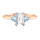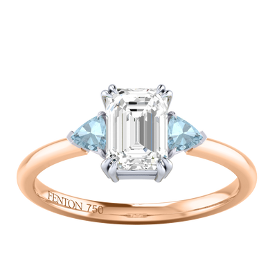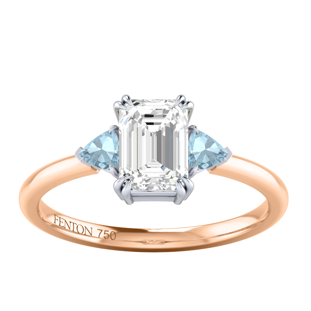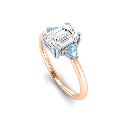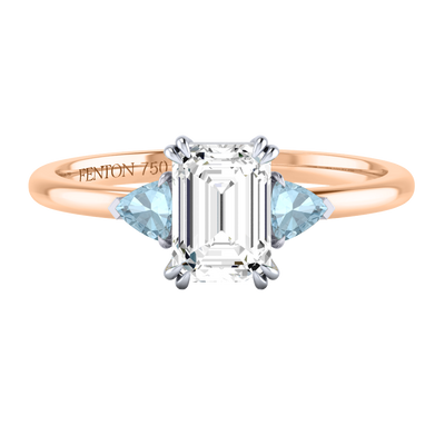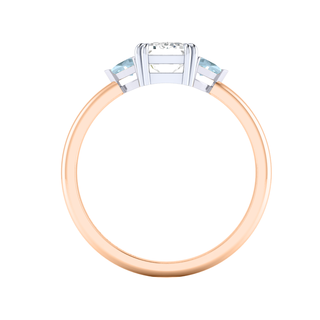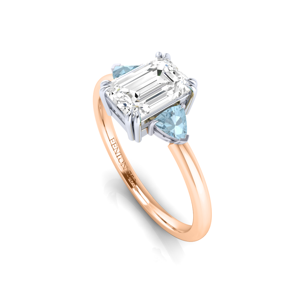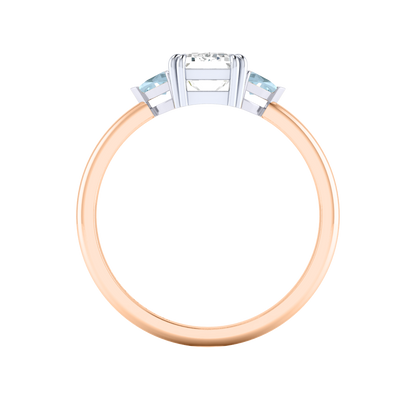 Lab Grown Solar Diamond Trilogy Emerald Cut Diamond and Aquamarine 18k Rose Gold Ring