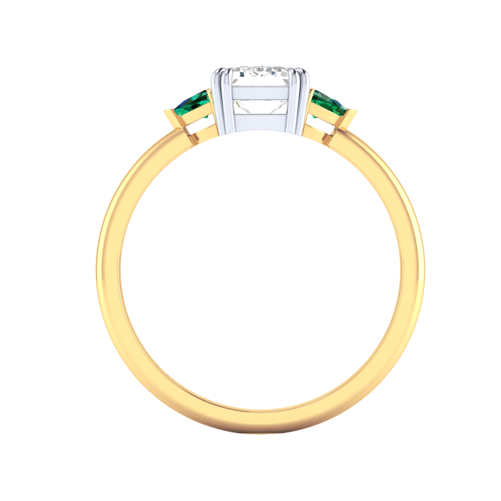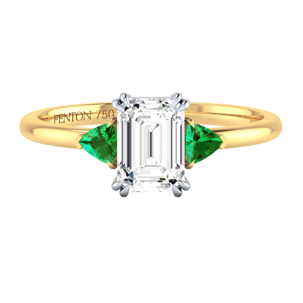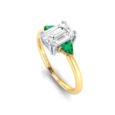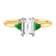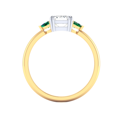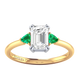 Lab Grown Solar Diamond Trilogy Emerald Cut Diamond and Emerald 18k Yellow Gold Ring