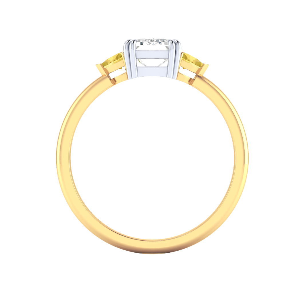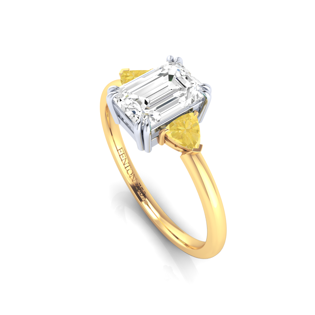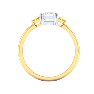 Lab Grown Solar Diamond Trilogy Emerald Cut Diamond and Yellow Sapphire 18k Yellow Gold Ring