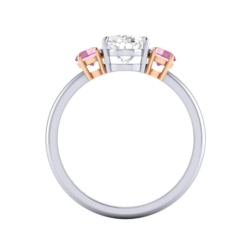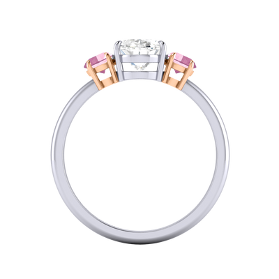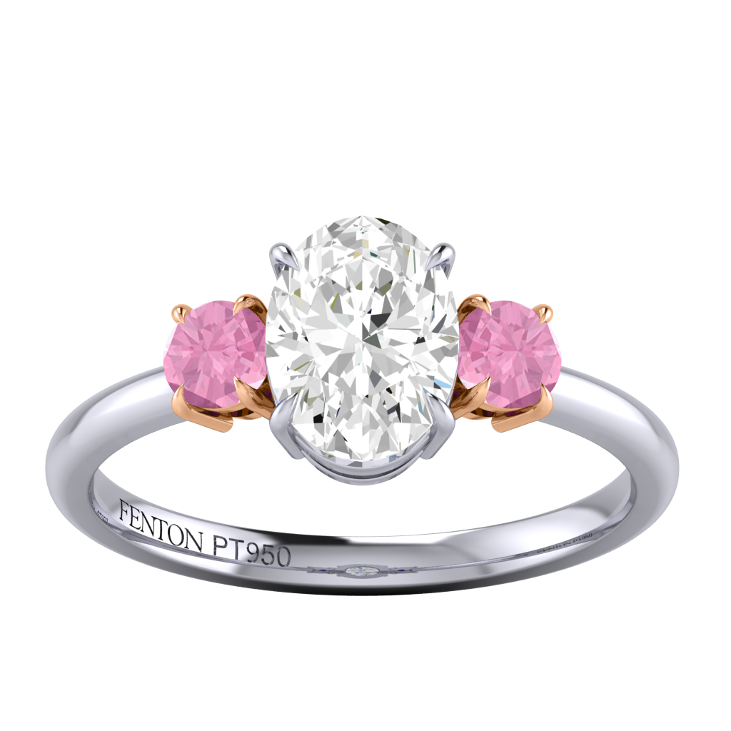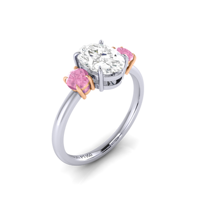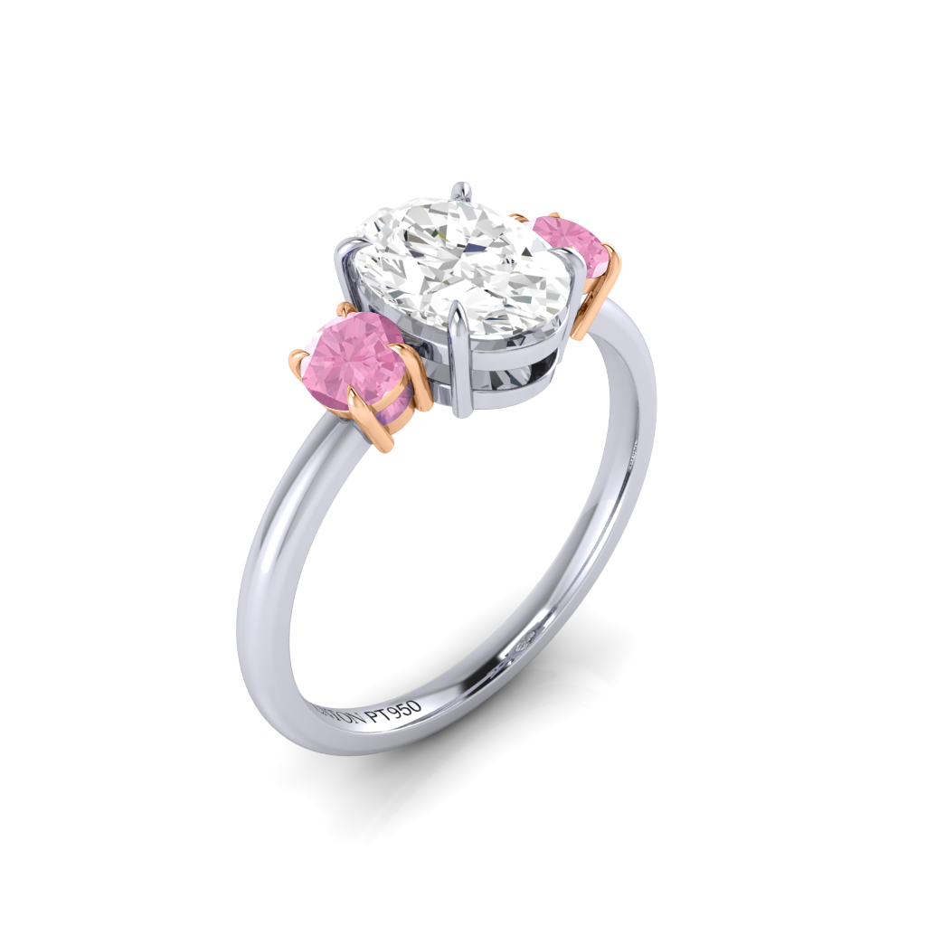 Lab Grown Solar Diamond Trilogy Oval Cut Diamond and Pink Sapphire Platinum Ring